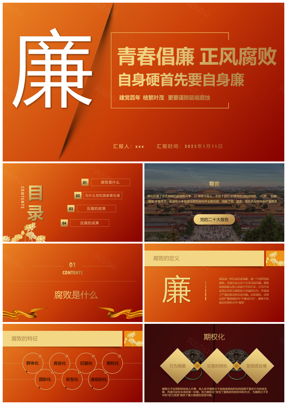 风云办公提供的2025青春倡廉党政廉政反腐简约PPT模板,下载格式为pptx,一共24页,作品中文字及图均可以修改和编辑,图片更改请在作品中右键图片并更换,文字修改请直接点击文字进行修改。