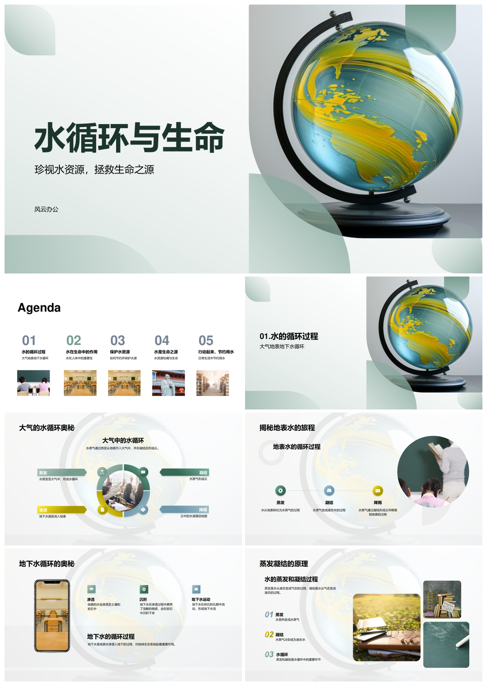 风云办公提供的水循环维系生命节约水资源PPT模板,下载格式为pptx,一共33页,作品中文字及图均可以修改和编辑,图片更改请在作品中右键图片并更换,文字修改请直接点击文字进行修改。