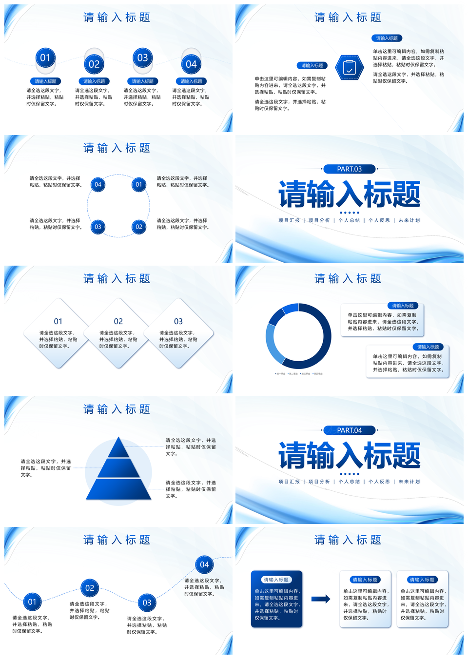 2025年中总结蓝色简约商务工作汇报PPT模板