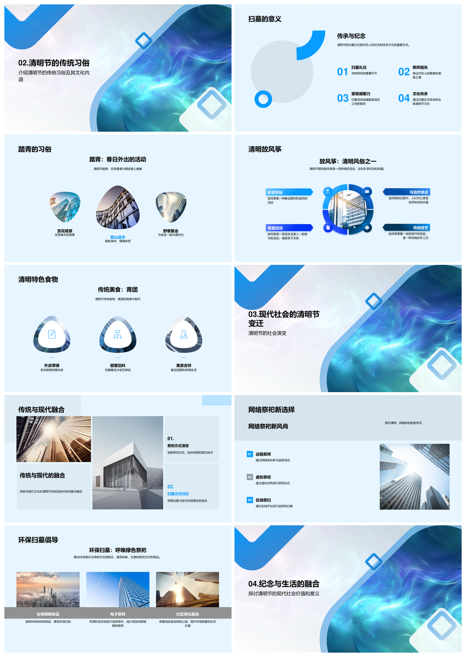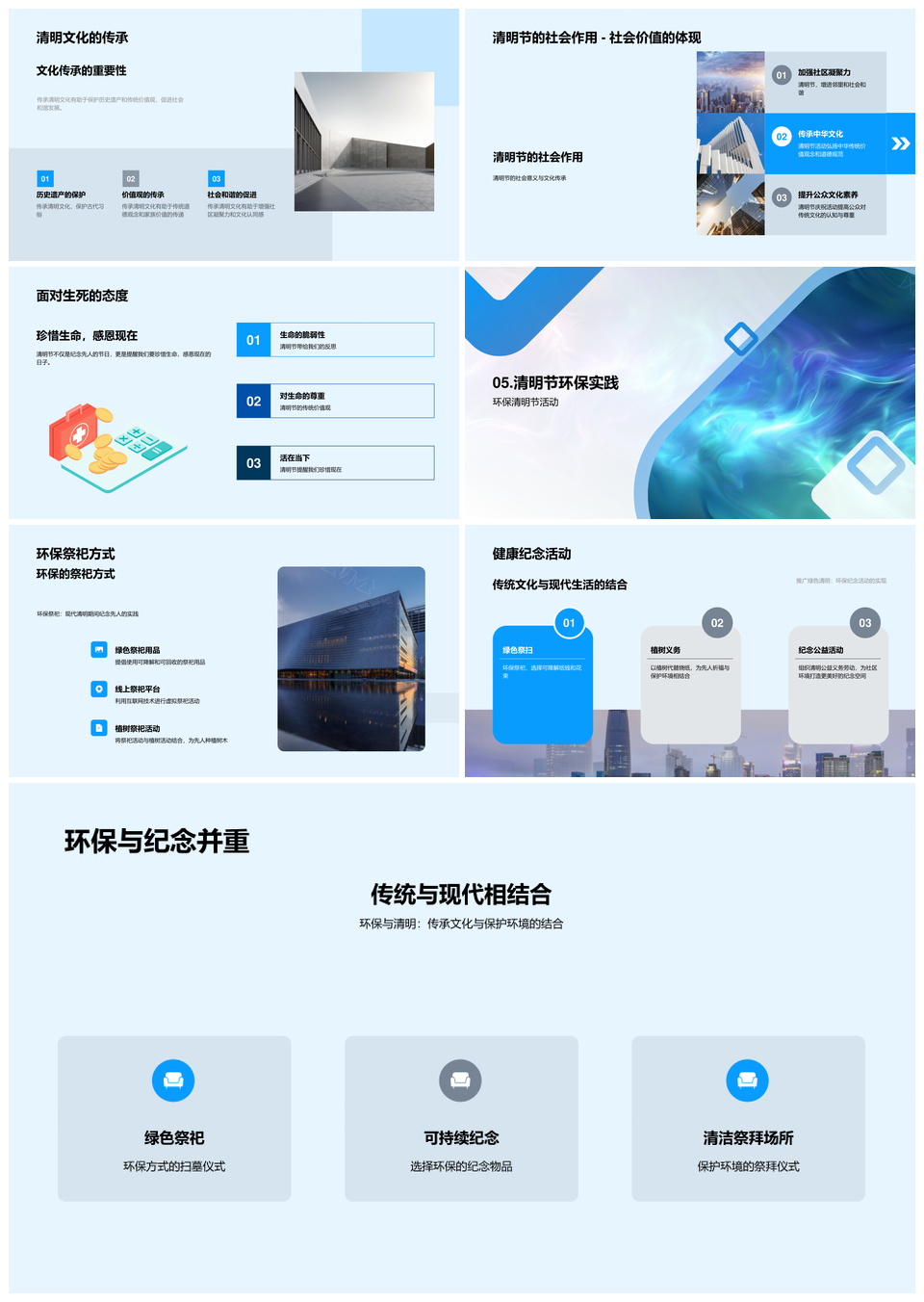2025清明节扫墓踏青放风筝寒食环保网络祭祀研讨PPT模板推荐