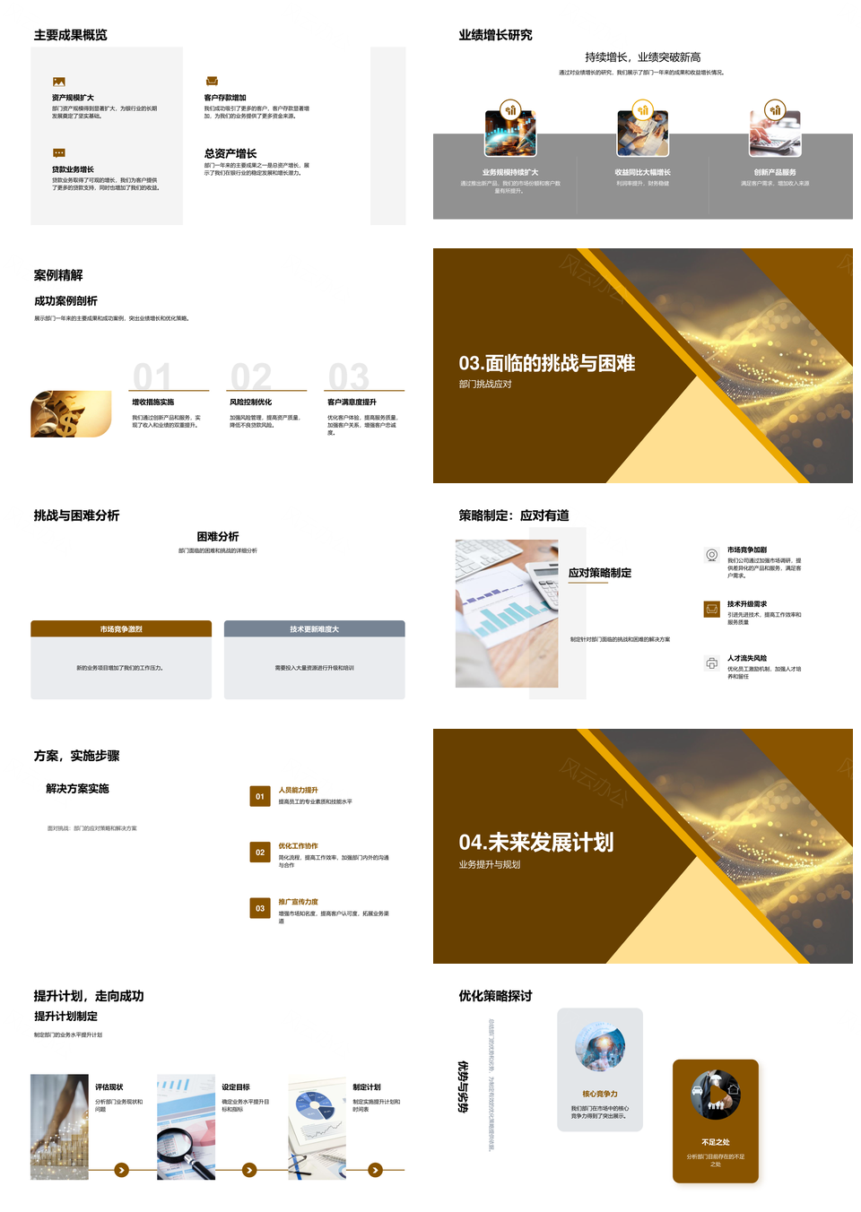 这是一张银行业务年终业绩增长市场预测挑战与提升计划PPT模板,包含银行业务、年终业绩、增长、市场预测、挑战、提升计划等主题内容,也可用作银行业务年终业绩增长市场预测挑战、银行业务年终业绩增长市场预测、年终业绩增长市场预测挑战提升计划、年终业绩增长市场预测挑战、业绩增长市场预测挑战提升计划、市场预测挑战提升计划、银行业务年终业绩增长、年终业绩增长市场预测、业绩增长市场预测挑战、市场预测挑战提升计划、银行业务年终、年终业绩增长、业绩增长市场预测、市场预测挑战、挑战提升计划等PPT场景使用。 风云办公提供的银行业务年终业绩增长市场预测挑战与提升计划PPT模板,下载格式为pptx,一共23页,作品中文字及图均可以修改和编辑,图片更改请在作品中右键图片并更换,文字修改请直接点击文字进行修改。