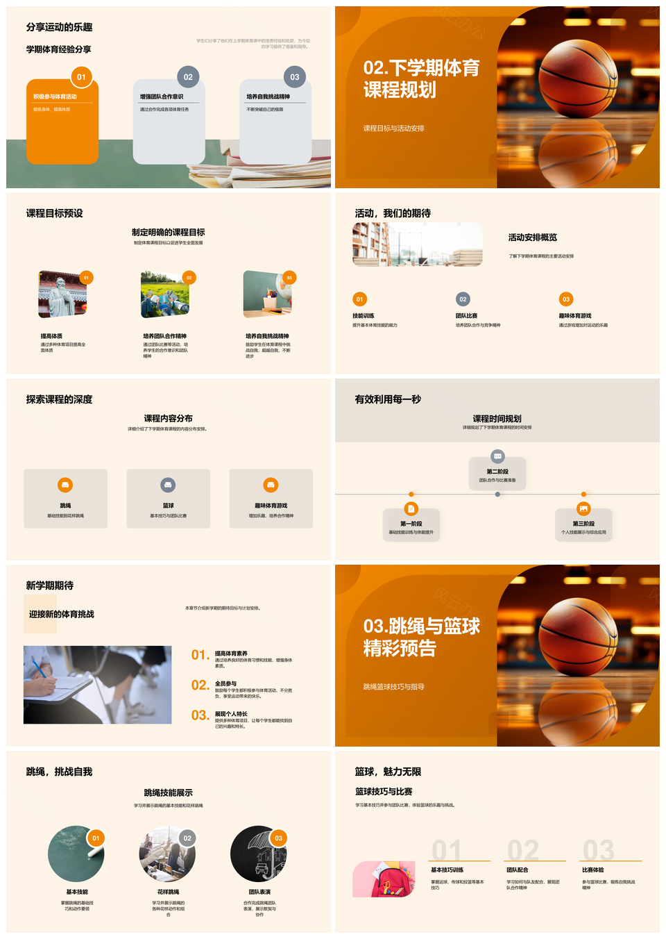 这是一张四年级体育强体魄快乐成长跳绳篮球趣味游戏PPT模板,包含四年级、体育、强体魄、快乐成长、跳绳、篮球、趣味游戏等主题内容,也可用作四年级体育强体魄快乐成长、体育强体魄快乐成长跳绳、强体魄快乐成长跳绳篮球、快乐成长跳绳篮球趣味游戏、四年级体育跳绳篮球趣味游戏、体育强体魄快乐成长、强体魄快乐成长跳绳、快乐成长跳绳篮球、跳绳篮球趣味游戏、四年级体育强体魄、体育跳绳篮球趣味游戏、强体魄跳绳篮球趣味游戏、四年级体育跳绳篮球、体育强体魄跳绳、跳绳篮球等PPT场景使用。 风云办公提供的四年级体育强体魄快乐成长跳绳篮球趣味游戏PPT模板,下载格式为pptx,一共33页,作品中文字及图均可以修改和编辑,图片更改请在作品中右键图片并更换,文字修改请直接点击文字进行修改。