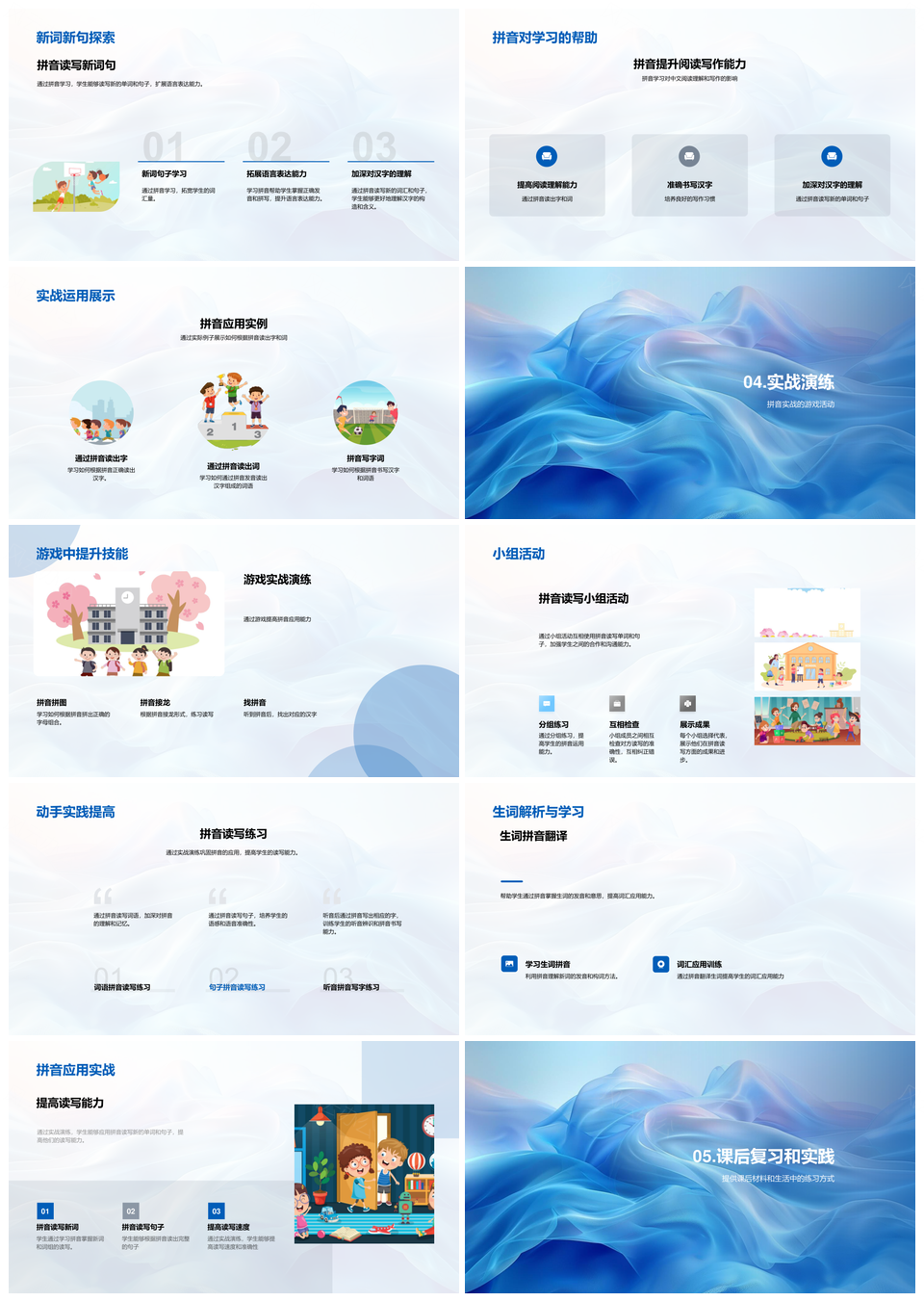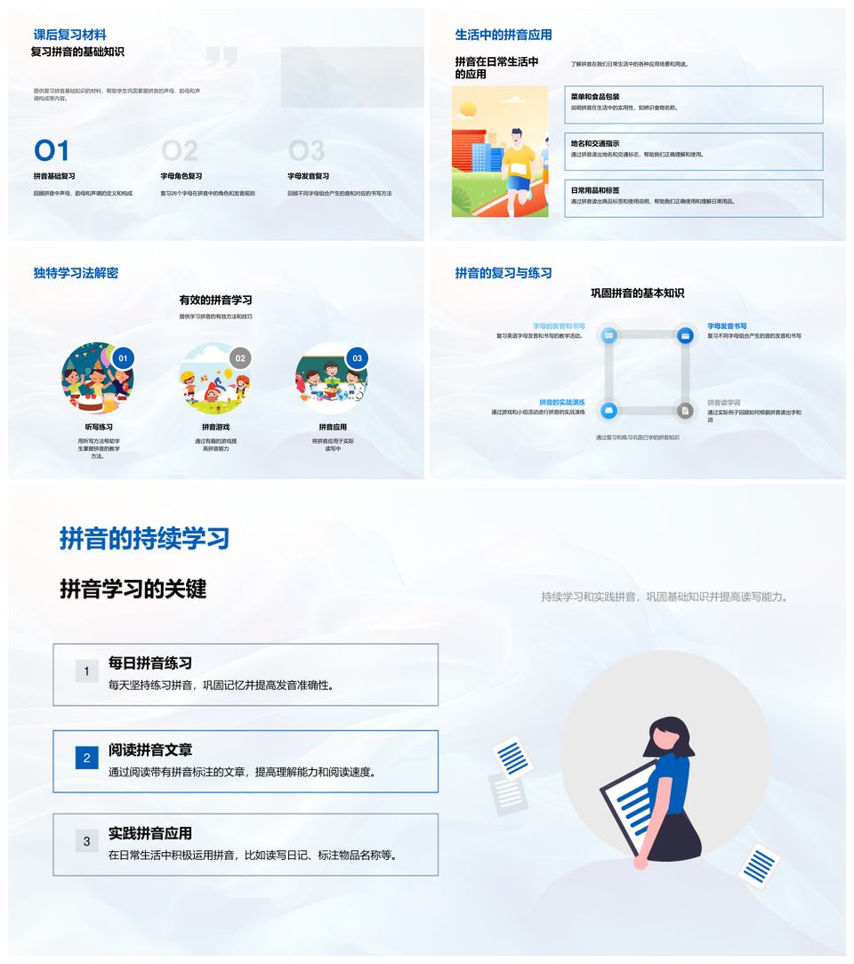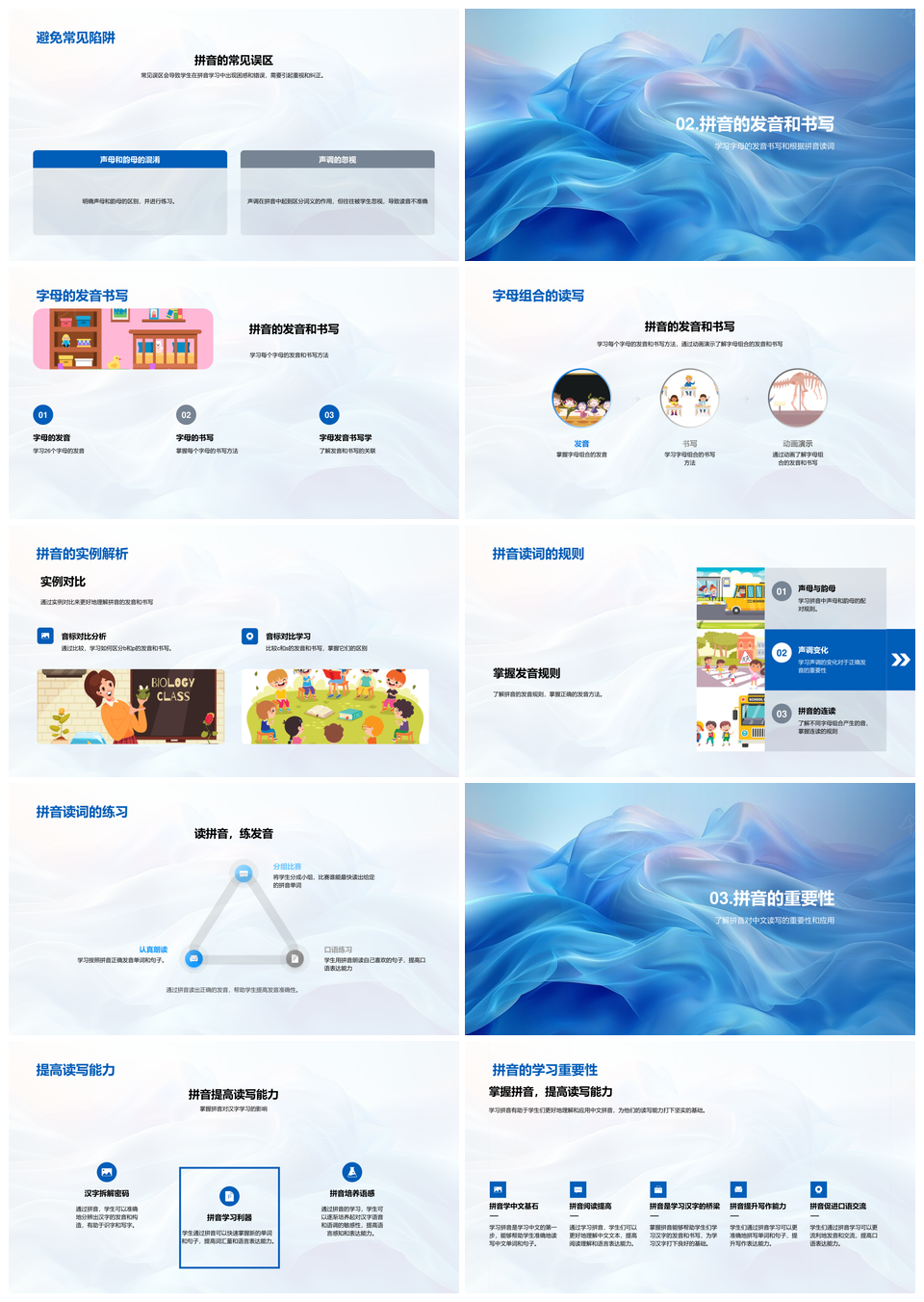 拼音声母韵母声调26字母发音书写规则实战教学PPT模板推荐