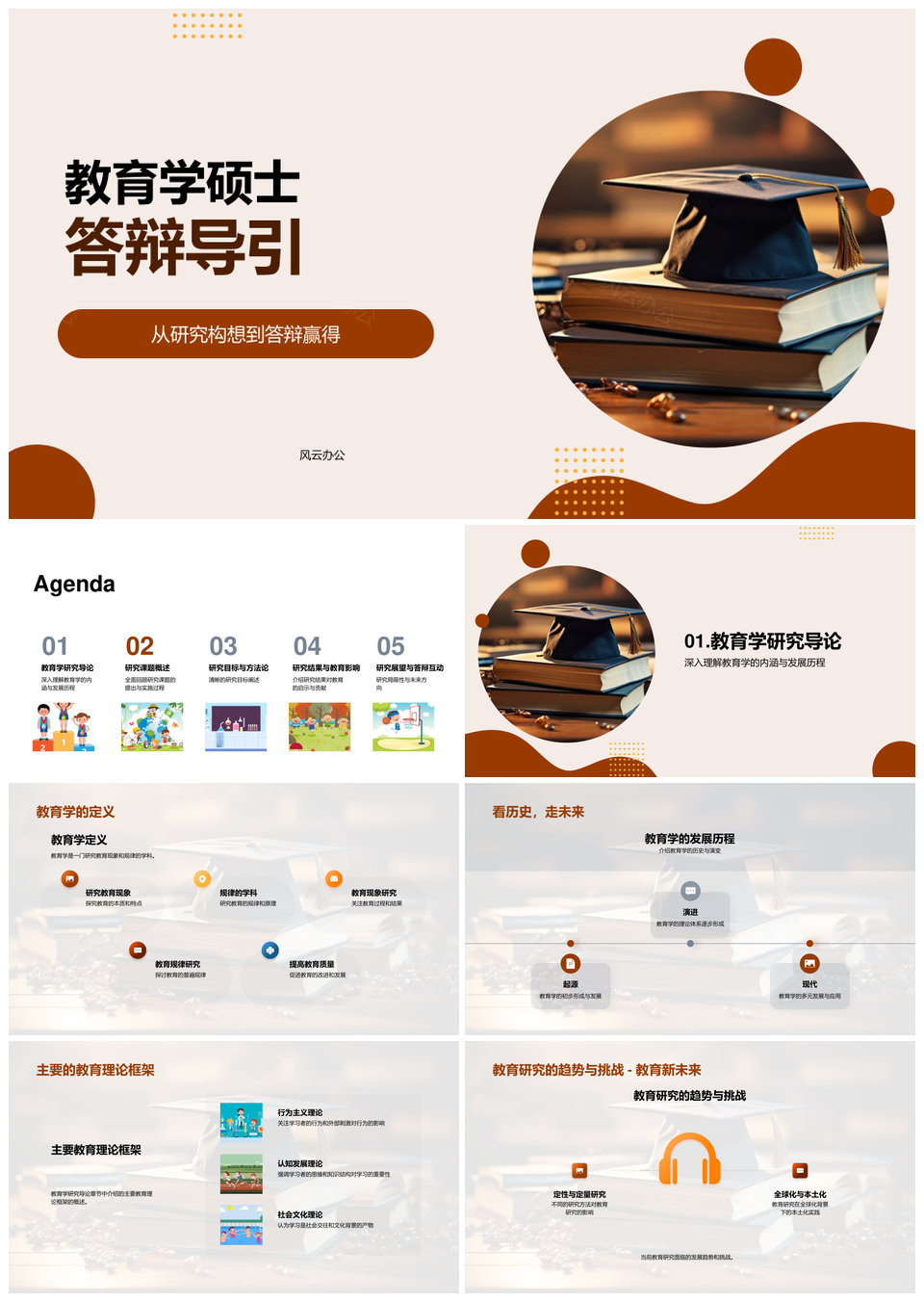风云办公提供的教育学硕士答辩研究构想毕业帽PPT模板,下载格式为pptx,一共24页,作品中文字及图均可以修改和编辑,图片更改请在作品中右键图片并更换,文字修改请直接点击文字进行修改。