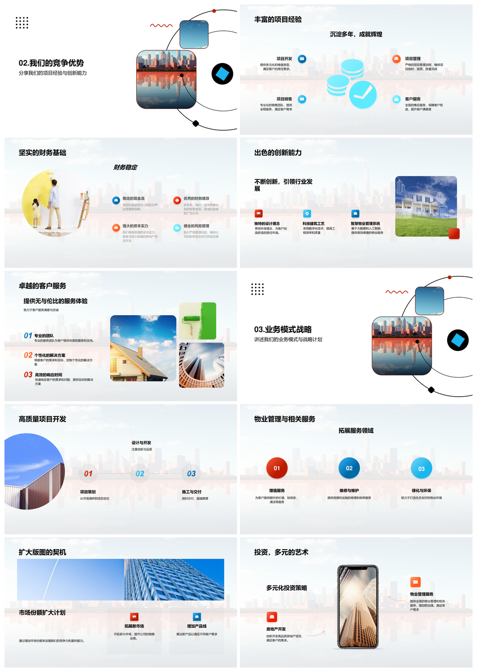 房产战略投资公司历史产品服务竞争项目财务摩天大楼PPT模板