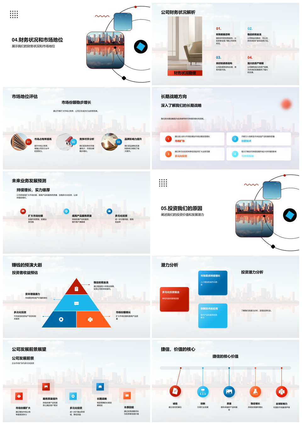房产战略投资公司历史产品服务竞争项目财务摩天大楼PPT模板推荐