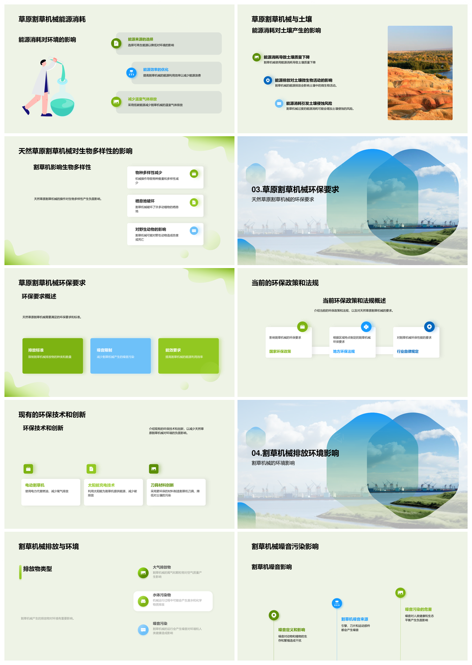 这是一张草原割草机械环保影响与能耗分析PPT模板,包含草原、割草机械、环保影响、能耗分析等主题内容,也可用作草原割草机械环保、割草机械环保影响、机械环保影响能耗、环保影响能耗分析、草原割草机械、割草机械环保、机械环保影响、环保影响能耗、影响能耗分析、草原割草、割草机械、机械环保、环保影响、影响能耗、能耗分析等PPT场景使用。