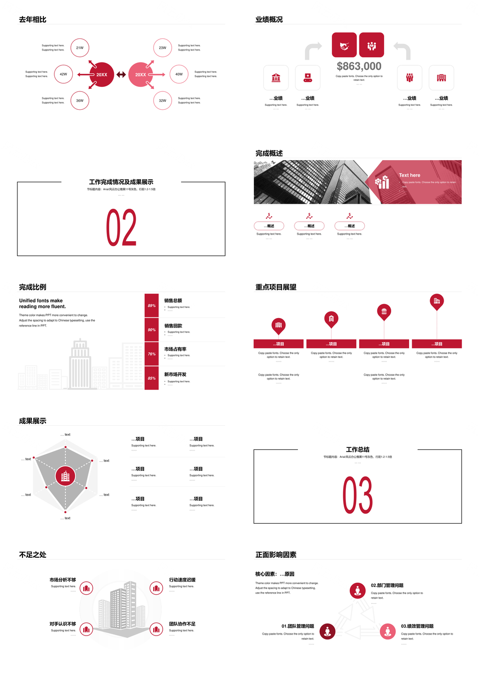2025红色时尚红极简创意年度总结工作计划PPT模板