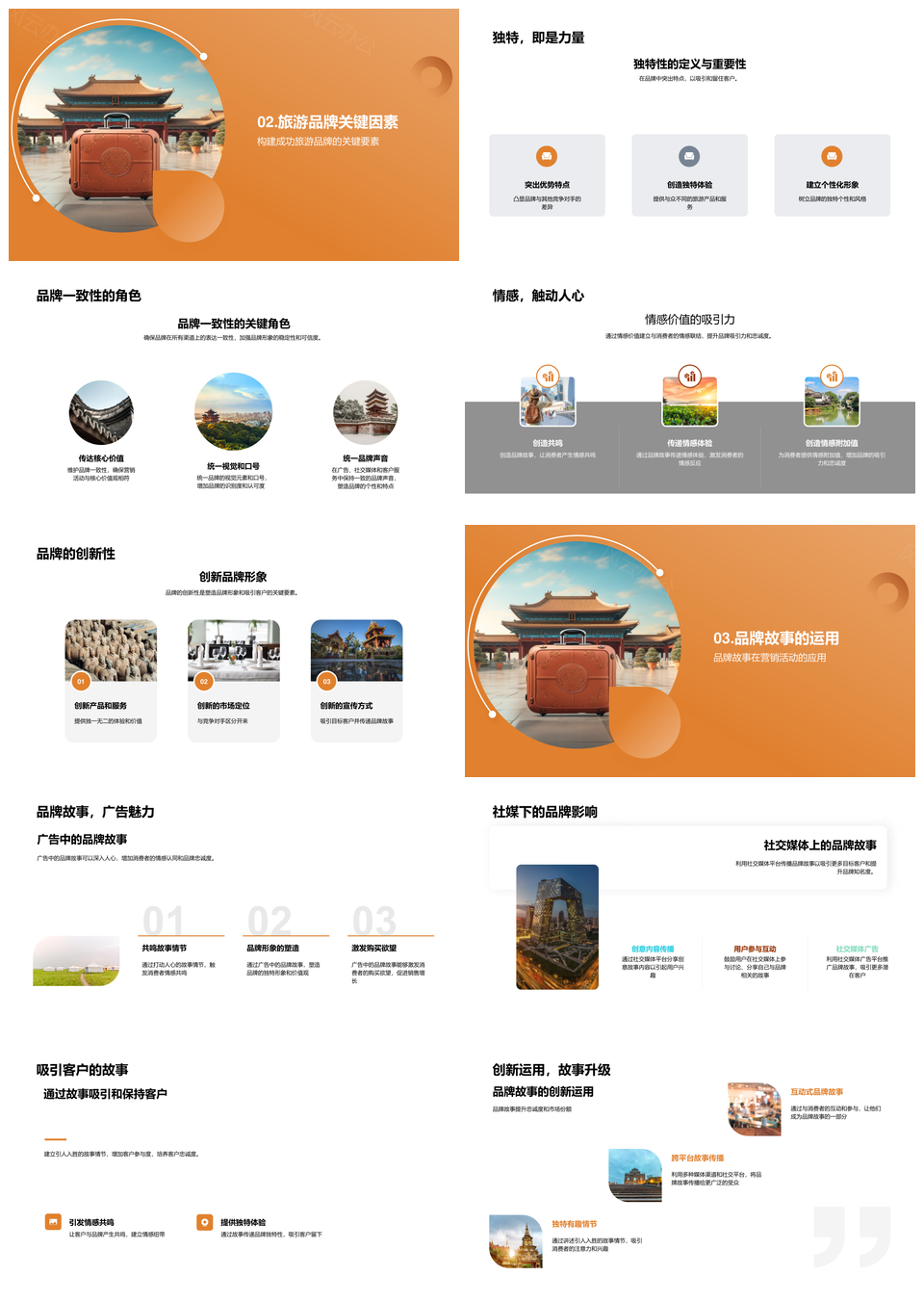 旅游品牌故事策划联结忠诚古建情感独特PPT模板推荐