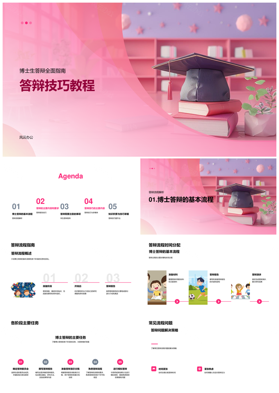 博士生答辩流程写作技巧多媒体应用知识积累心态调整PPT模板推荐