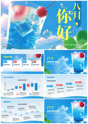 2025蓝色3D风八月市场营销计划提升品牌影响力暑期成果丰硕PPT模板