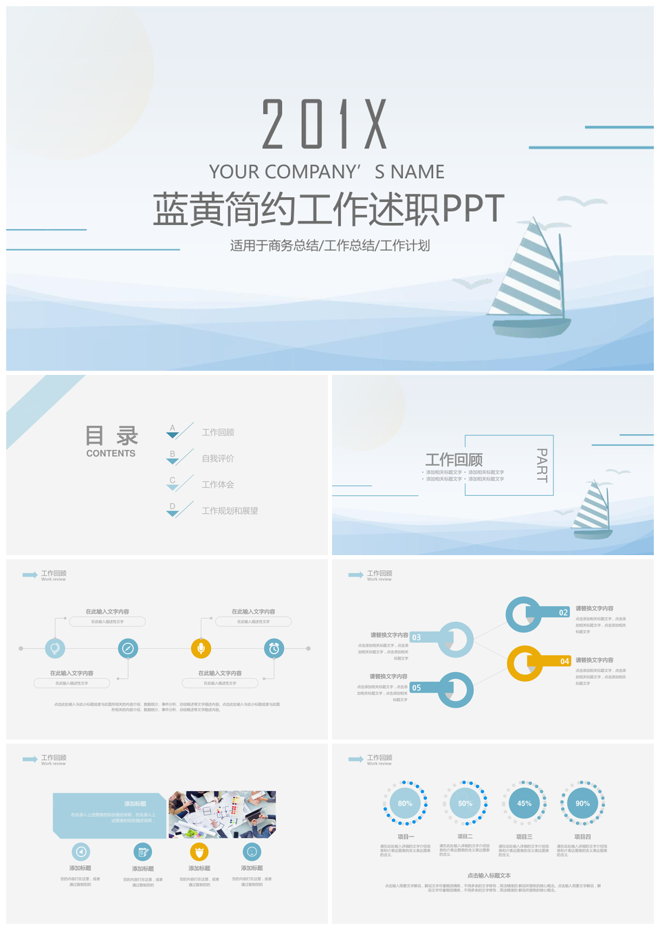蓝黄简约工作述职PPT模板推荐