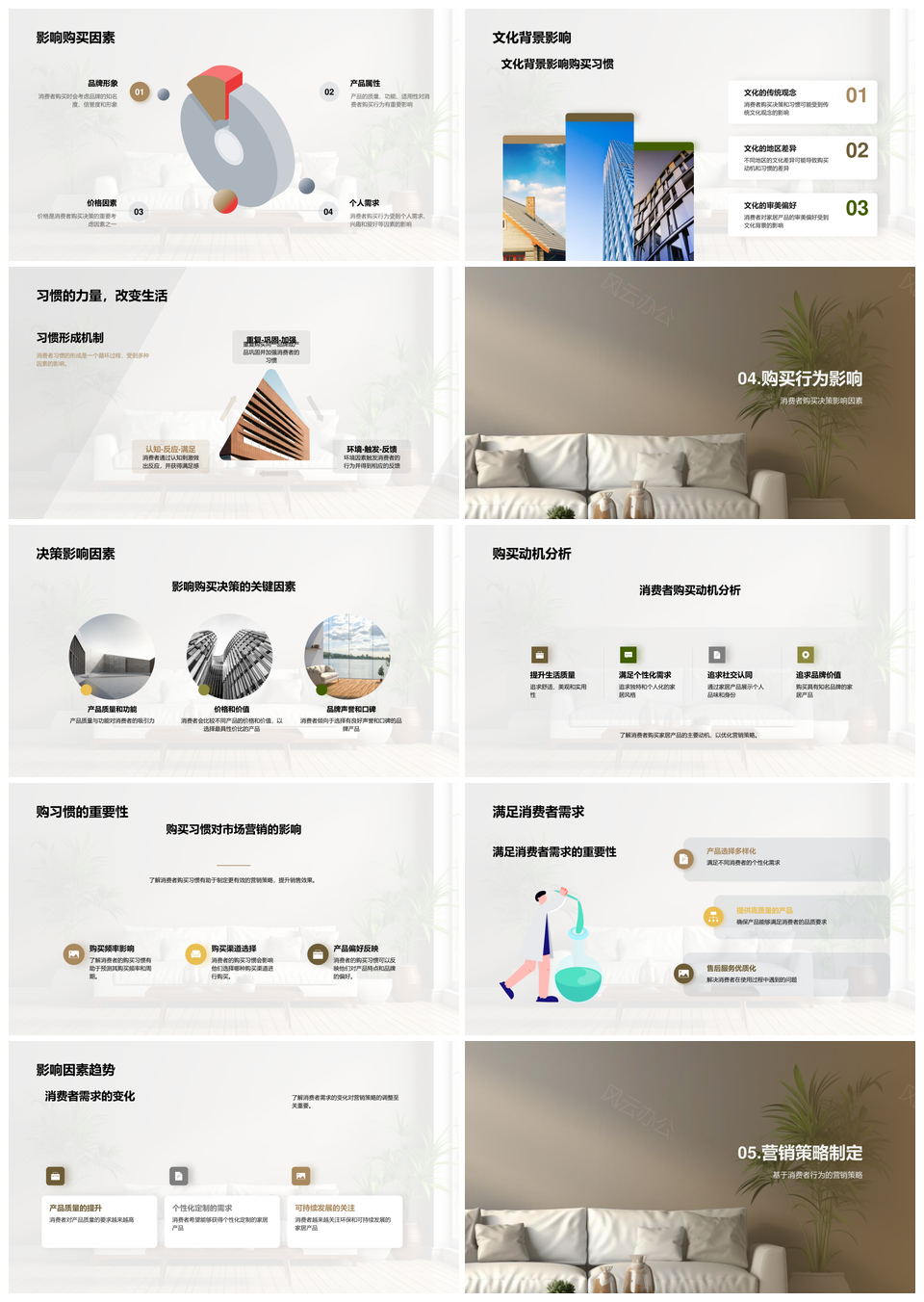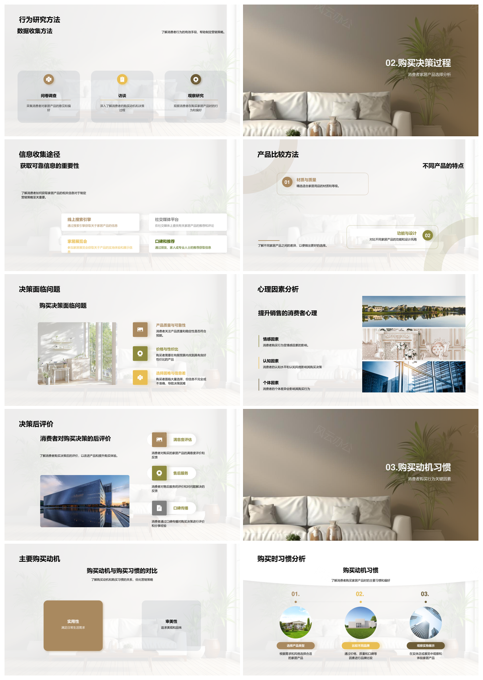 这是一张家居消费者购买行为与营销策略决策分析PPT模板,包含家居、消费者、购买行为、营销策略、决策、分析等主题内容,也可用作家居消费者购买行为营销策略、家居消费者购买行为决策分析、家居消费者营销策略决策分析、家居购买行为营销策略决策分析、消费者购买行为营销策略决策分析、家居消费者购买行为、家居消费者营销策略、家居消费者决策分析、消费者购买行为营销策略、消费者购买行为决策分析、购买行为营销策略决策分析、家居消费者、消费者购买行为、营销策略决策分析、购买行为决策分析等PPT场景使用。 风云办公提供的家居消费者购买行为与营销策略决策分析PPT模板,下载格式为pptx,一共33页,作品中文字及图均可以修改和编辑,图片更改请在作品中右键图片并更换,文字修改请直接点击文字进行修改。