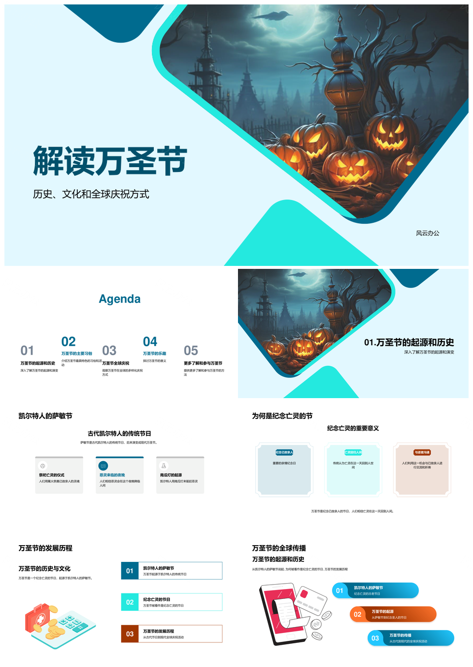 万圣节历史文化与萨敏节亡灵恶鬼南瓜灯全球习俗PPT模板推荐