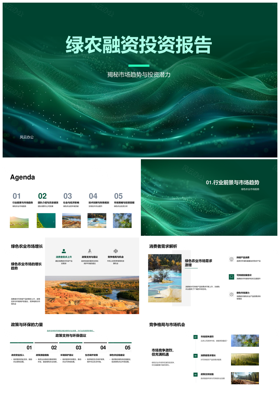 这是一张绿农融资投资市场趋势绿色农业潜力分析PPT模板,包含绿农、融资、投资、市场、趋势、绿色农业、潜力、分析等主题内容,也可用作绿农融资投资市场趋势、融资投资市场趋势绿色、投资市场趋势绿色农业、市场趋势绿色农业潜力、趋势绿色农业潜力分析、绿农融资投资市场、融资投资市场趋势绿色农业、投资市场趋势绿色农业潜力、绿农融资投资、融资投资市场趋势、市场趋势绿色农业、趋势绿色农业潜力、绿色农业潜力分析、融资投资市场、投资市场趋势等PPT场景使用。 风云办公提供的绿农融资投资市场趋势绿色农业潜力分析PPT模板,下载格式为pptx,一共28页,作品中文字及图均可以修改和编辑,图片更改请在作品中右键图片并更换,文字修改请直接点击文字进行修改。
