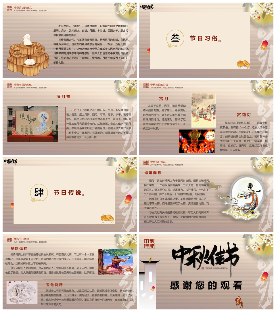 这是一张简约风中秋节节日介绍PPT模板,包含简约风、中秋节、节日介绍等主题内容,也可用作简约风、中秋节、节日、介绍 简约风中秋节节日介绍、简约风中秋节介绍、中秋节节日介绍、简约风节日介绍、简约风中秋节、中秋节节日、节日介绍、简约风介绍等PPT场景使用。 风云办公提供的简约风中秋节节日介绍PPT模板,下载格式为pptx,一共15页,作品中文字及图均可以修改和编辑,图片更改请在作品中右键图片并更换,文字修改请直接点击文字进行修改。