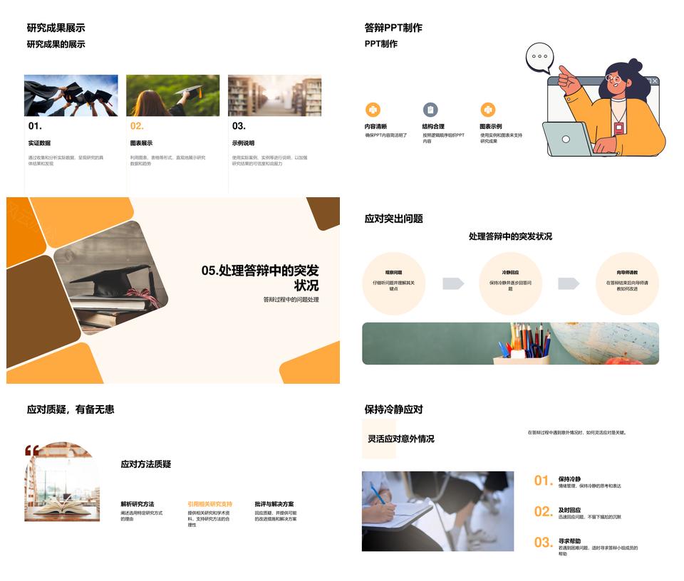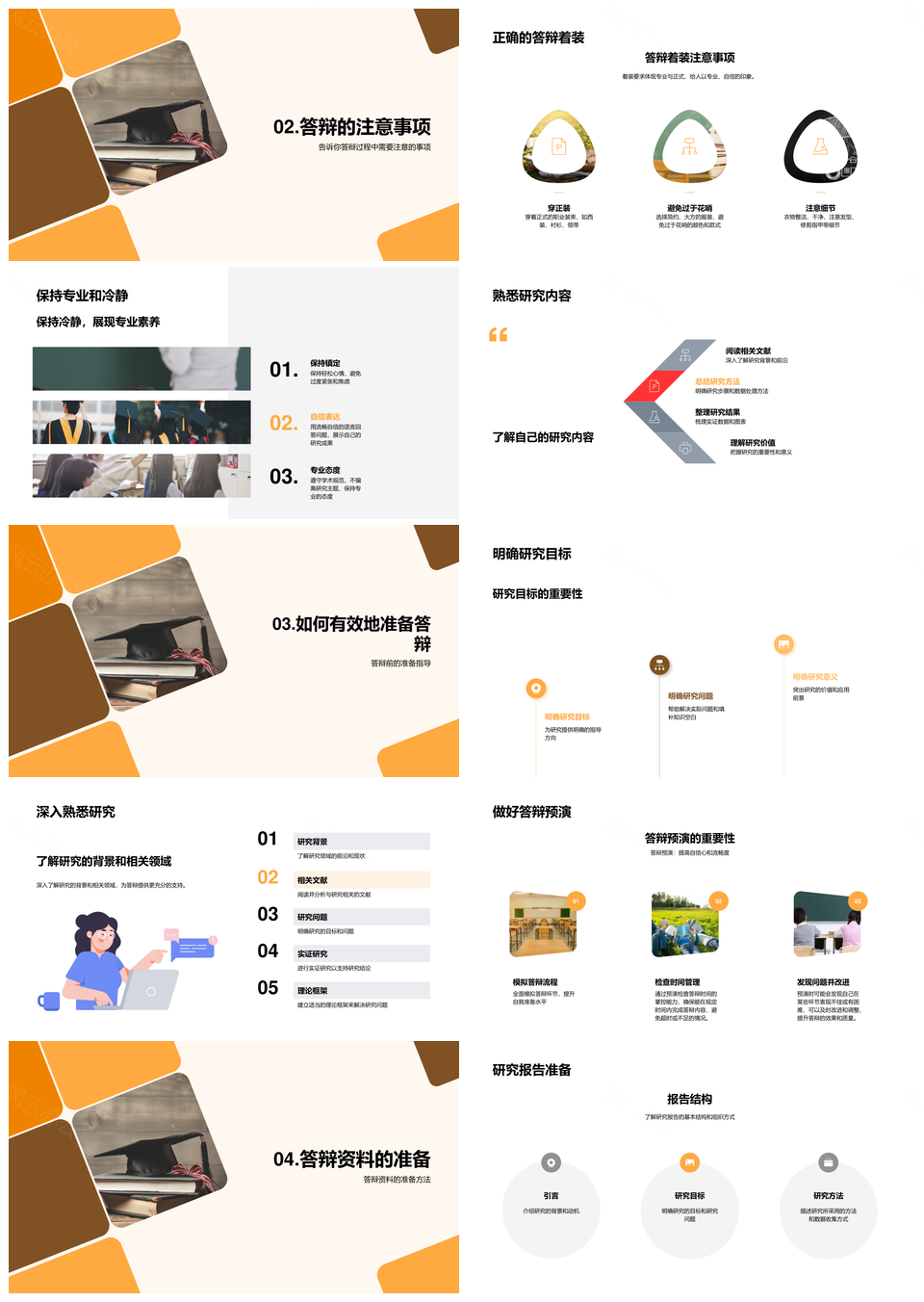 这是一张专科生答辩技巧应急处理研究着装毕业帽攻略PPT模板,包含专科生、答辩技巧、应急处理、研究、着装、毕业帽、攻略等主题内容,也可用作专科生答辩技巧应急处理、答辩技巧应急处理研究、应急处理研究着装毕业帽、研究着装毕业帽攻略、专科生应急处理研究着装、答辩技巧研究毕业帽攻略、应急处理着装毕业帽攻略、专科生答辩技巧研究、答辩应急处理研究着装、研究毕业帽攻略专科生、答辩技巧应急处理、应急处理研究着装、研究着装毕业帽、毕业帽攻略专科生、答辩技巧研究等PPT场景使用。 风云办公提供的专科生答辩技巧应急处理研究着装毕业帽攻略PPT模板,下载格式为pptx,一共24页,作品中文字及图均可以修改和编辑,图片更改请在作品中右键图片并更换,文字修改请直接点击文字进行修改。