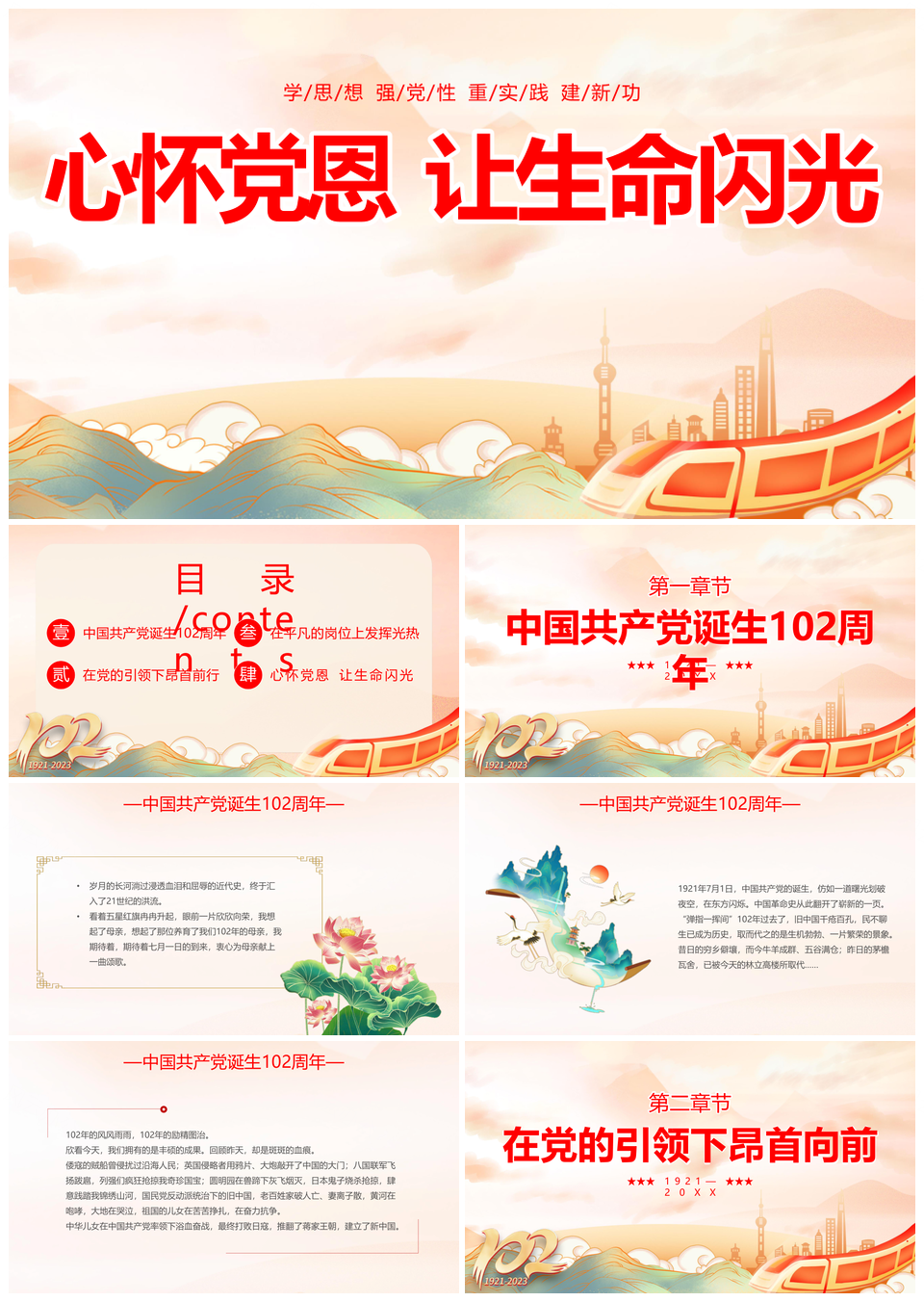2025童心向党迎七一红色国潮庆建党102周年班会PPT模板