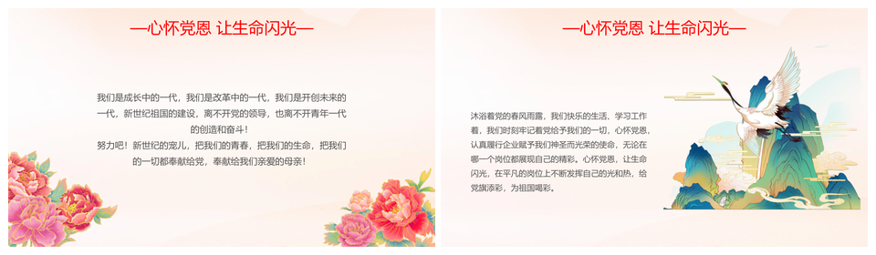 2025国风复古传统美德水彩插画红色教育PPT模板