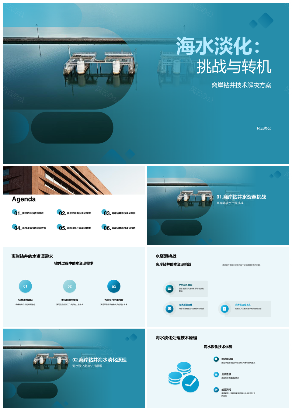 这是一张离岸钻井平台海水淡化技术应对水资源挑战PPT模板,包含离岸、钻井平台、海水淡化技术、水资源、挑战等主题内容,也可用作离岸钻井平台海水淡化技术、离岸钻井平台海水淡化、钻井平台海水淡化技术、平台海水淡化技术应对、钻井平台海水淡化、离岸钻井平台技术、海水淡化技术应对、平台海水淡化技术、应对水资源挑战、钻井平台技术、海水淡化技术、离岸钻井平台、平台海水淡化、钻井平台海水、海水淡化应对等PPT场景使用。 风云办公提供的离岸钻井平台海水淡化技术应对水资源挑战PPT模板,下载格式为pptx,一共22页,作品中文字及图均可以修改和编辑,图片更改请在作品中右键图片并更换,文字修改请直接点击文字进行修改。