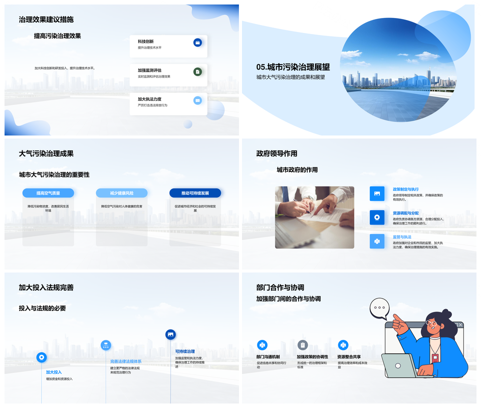 这是一张城市大气污染治理规划政企共护健康环境PPT模板,包含城市、大气污染、治理、规划、政企、共护、健康环境等主题内容,也可用作城市大气污染治理规划、大气污染治理规划政企、污染治理规划政企共护、治理规划政企共护健康、规划政企共护健康环境、城市大气污染治理、大气污染治理规划、污染治理规划政企、治理规划政企共护、规划政企共护健康、政企共护健康环境、城市大气污染、大气污染治理、污染治理规划、治理规划政企、规划政企共护等PPT场景使用。 风云办公提供的城市大气污染治理规划政企共护健康环境PPT模板,下载格式为pptx,一共24页,作品中文字及图均可以修改和编辑,图片更改请在作品中右键图片并更换,文字修改请直接点击文字进行修改。