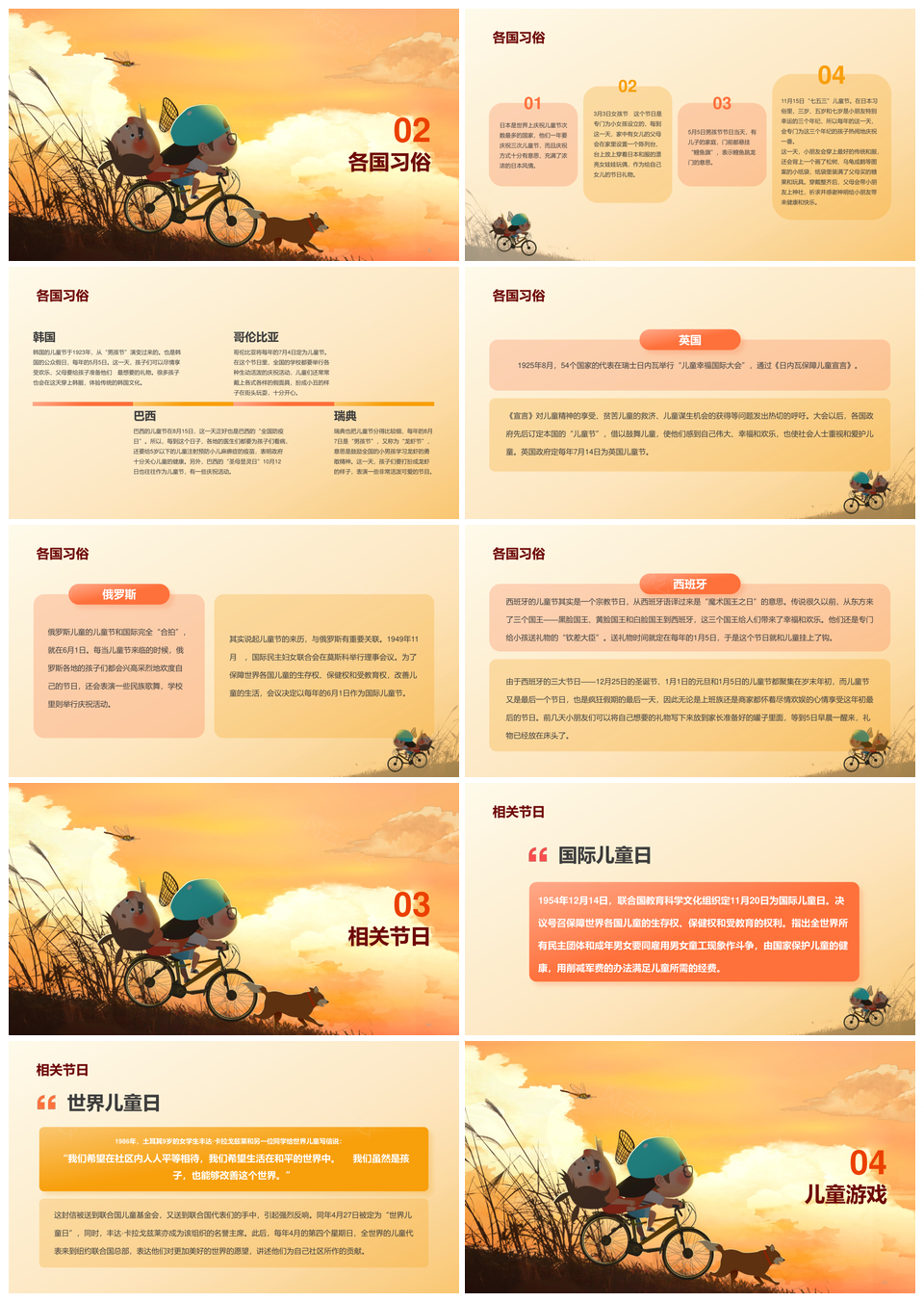 2025橙色插画卡通六一儿童节科普教育PPT模板推荐