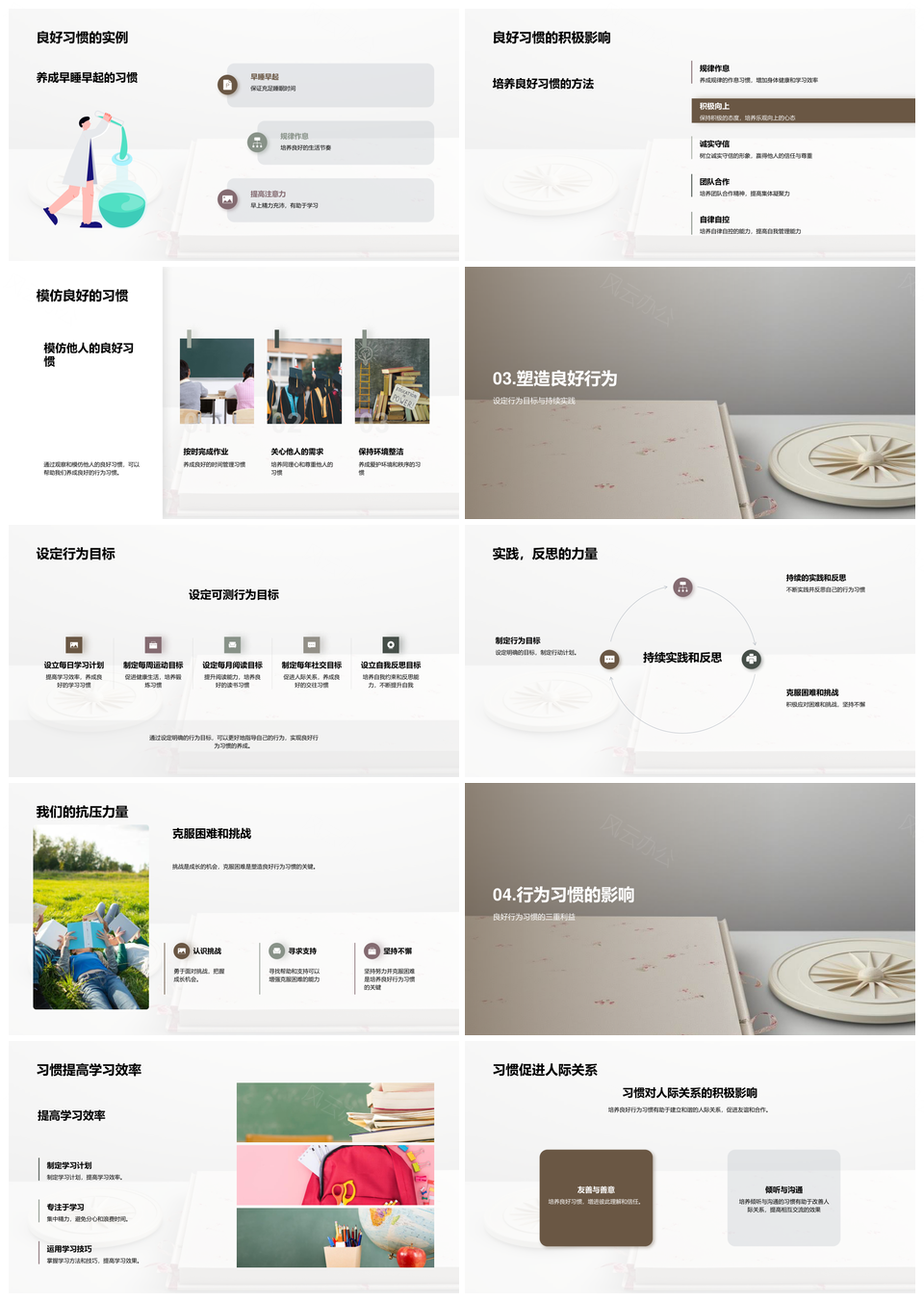 风云办公提供的学生良好习惯影响教育效率生活人际PPT模板,下载格式为pptx,一共23页,作品中文字及图均可以修改和编辑,图片更改请在作品中右键图片并更换,文字修改请直接点击文字进行修改。