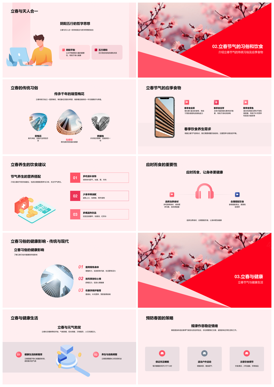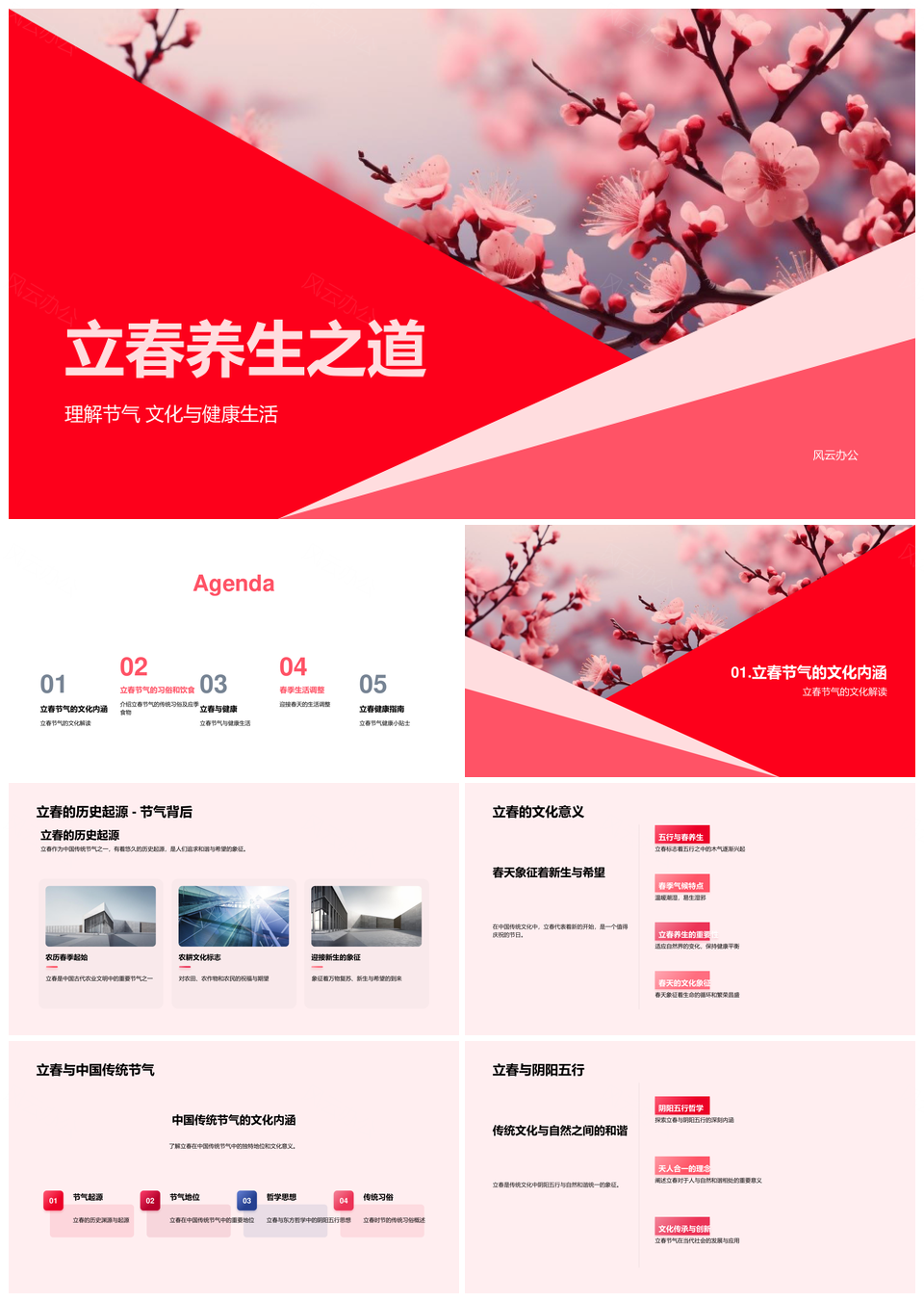 风云办公提供的立春养生融节气文化阴阳五行护春健PPT模板,下载格式为pptx,一共33页,作品中文字及图均可以修改和编辑,图片更改请在作品中右键图片并更换,文字修改请直接点击文字进行修改。