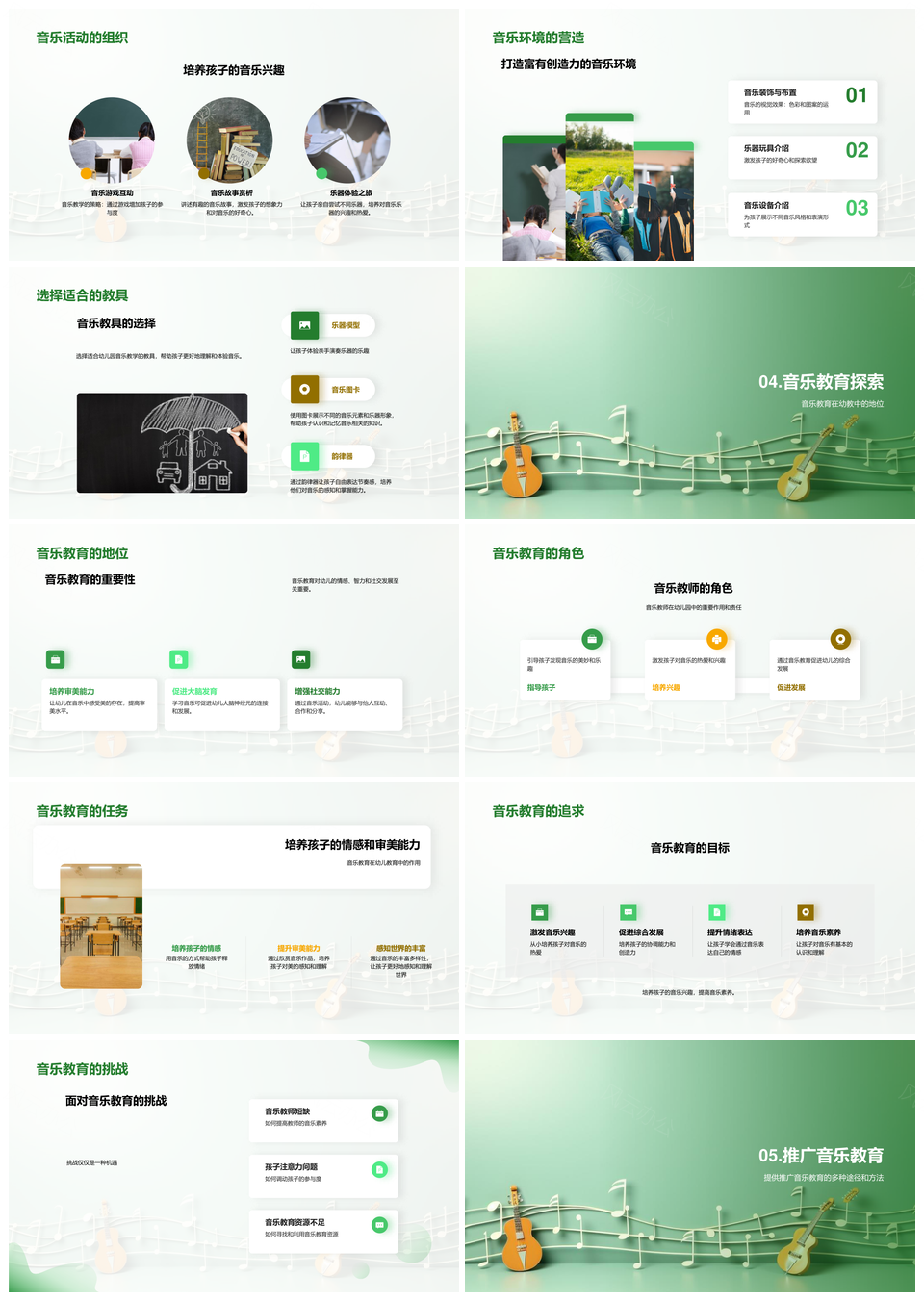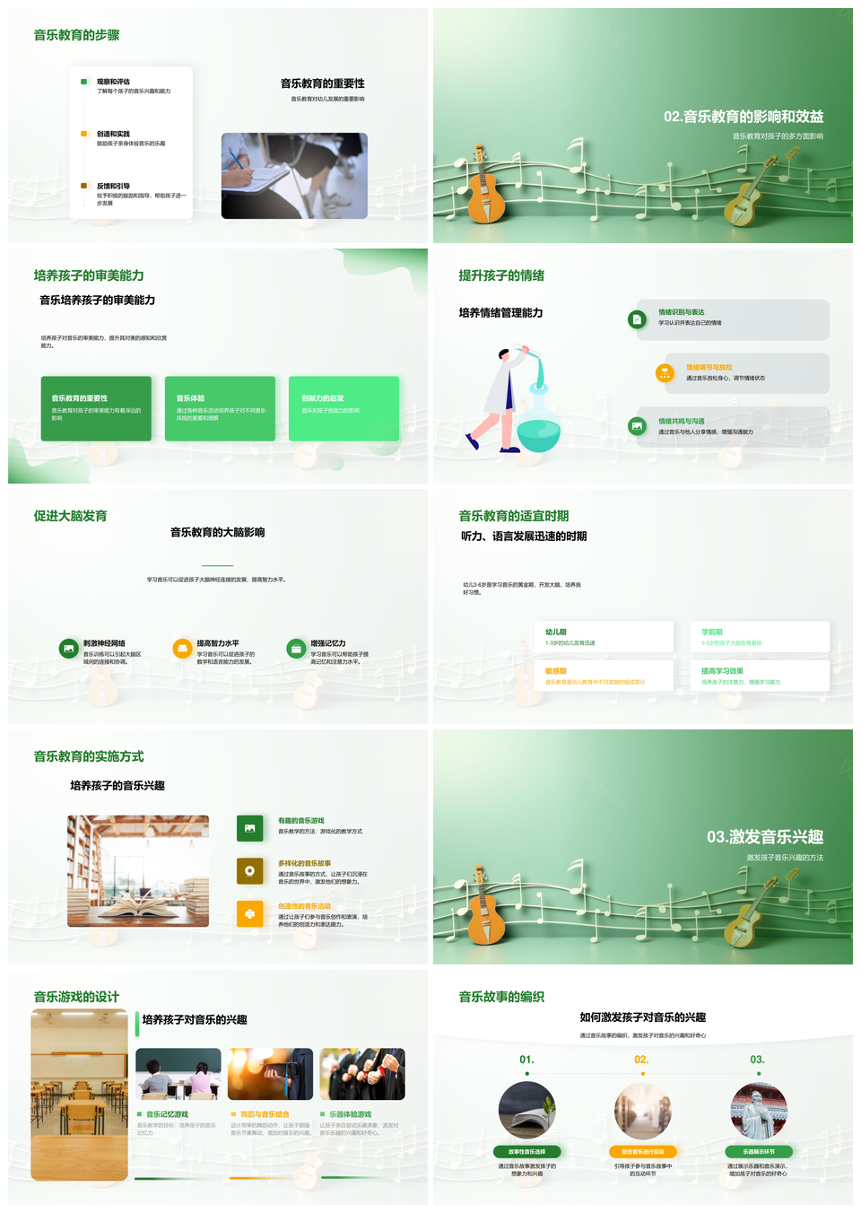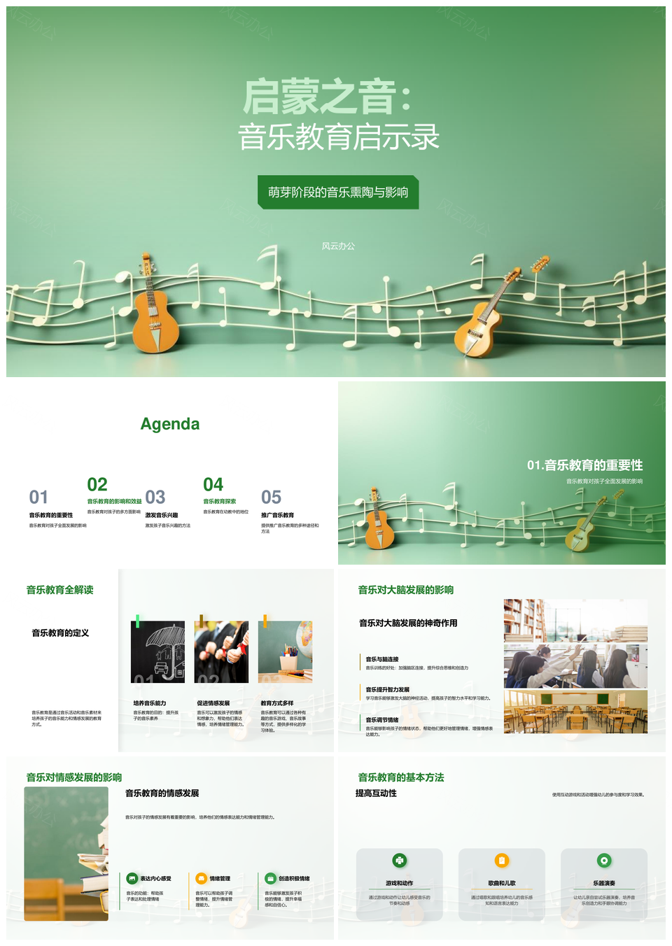 风云办公提供的音乐教育启智育情美育幼儿启蒙PPT模板,下载格式为pptx,一共33页,作品中文字及图均可以修改和编辑,图片更改请在作品中右键图片并更换,文字修改请直接点击文字进行修改。
