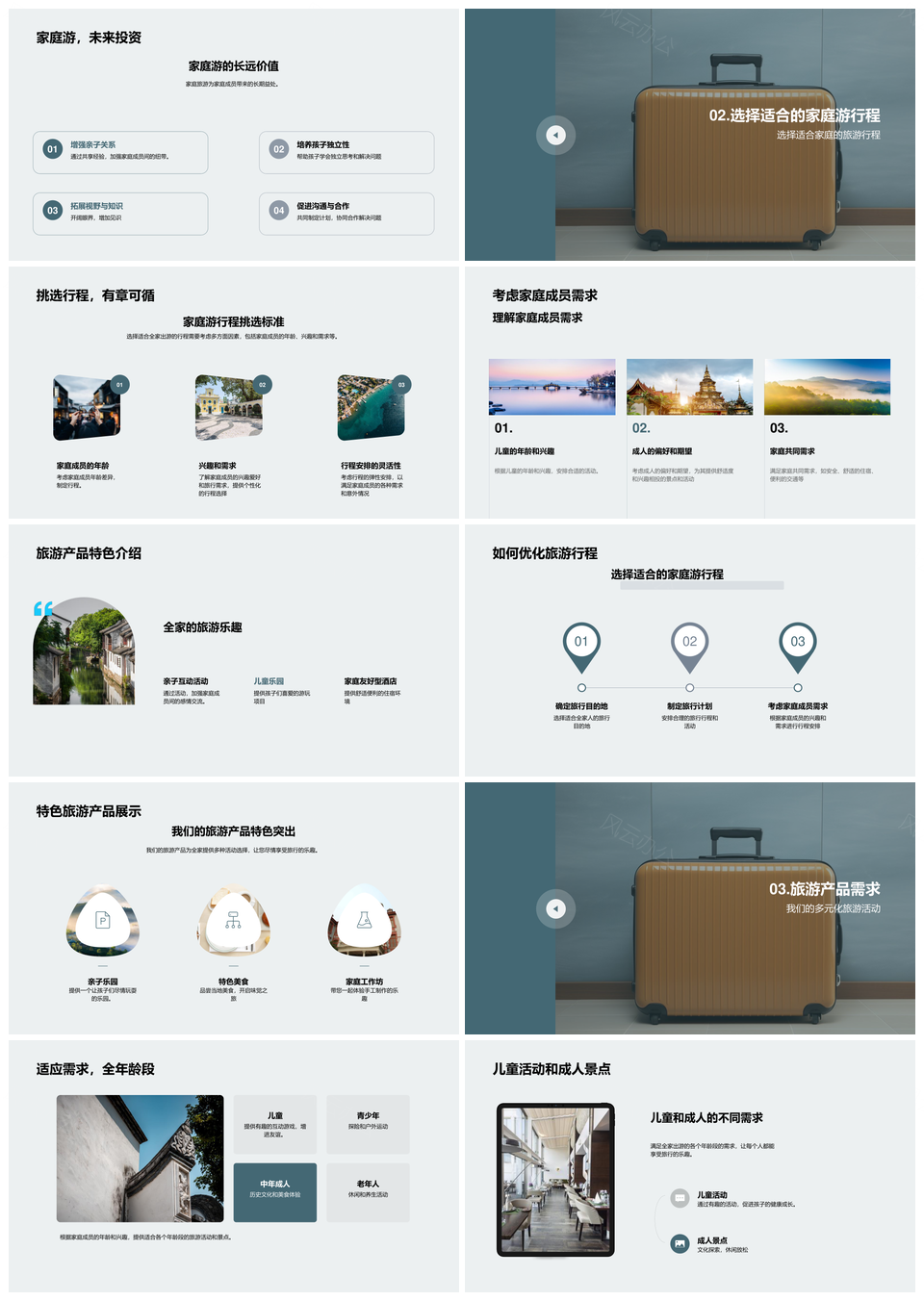 家庭亲子游策划师定制全家出游行程产品PPT模板推荐