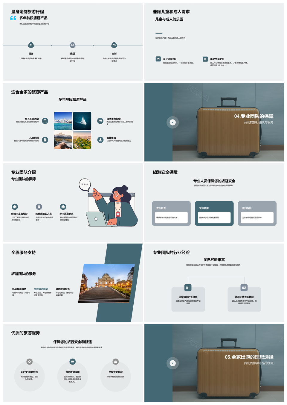 这是一张家庭亲子游策划师定制全家出游行程产品PPT模板,包含家庭、亲子游、策划师、定制、全家、出游、行程、产品等主题内容,也可用作家庭亲子游策划师定制、亲子游策划师定制全家、策划师定制全家出游、定制全家出游行程、全家出游行程产品、家庭亲子游策划师、亲子游策划师定制、策划师定制全家、定制全家出游、全家出游行程、出游行程产品、家庭亲子游定制、亲子游定制全家、全家出游产品、家庭定制行程等PPT场景使用。 风云办公提供的家庭亲子游策划师定制全家出游行程产品PPT模板,下载格式为pptx,一共33页,作品中文字及图均可以修改和编辑,图片更改请在作品中右键图片并更换,文字修改请直接点击文字进行修改。