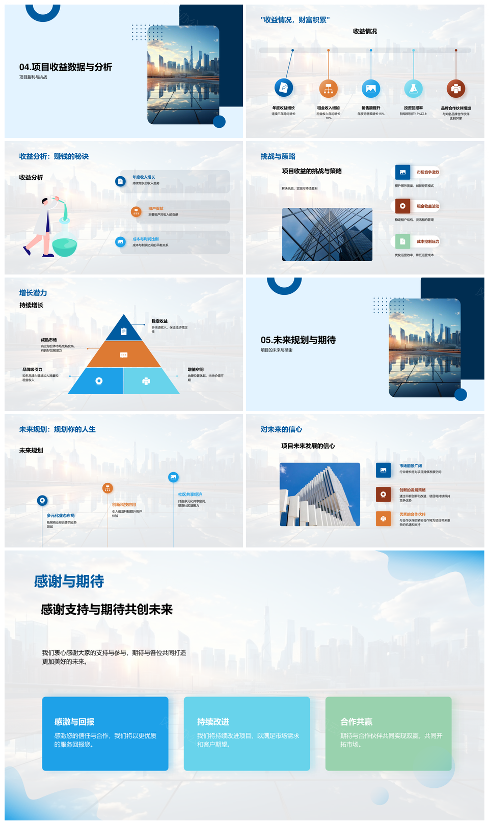 这是一张商业综合体摩天大楼项目历程与市场前瞻PPT模板,包含商业综合体、摩天大楼、项目、历程、市场、前瞻等主题内容,也可用作商业综合体摩天大楼项目历程与市场前瞻、商业综合体摩天大楼项目、摩天大楼项目历程市场前瞻、综合体摩天大楼项目历程、摩天大楼项目市场前瞻、商业综合体项目历程、综合体项目历程市场、项目历程与市场前瞻、商业综合体摩天大楼、摩天大楼项目历程、商业综合体市场前瞻、项目市场前瞻、商业综合体项目、摩天大楼项目、综合体项目历程、项目历程市场等PPT场景使用。 风云办公提供的商业综合体摩天大楼项目历程与市场前瞻PPT模板,下载格式为pptx,一共27页,作品中文字及图均可以修改和编辑,图片更改请在作品中右键图片并更换,文字修改请直接点击文字进行修改。