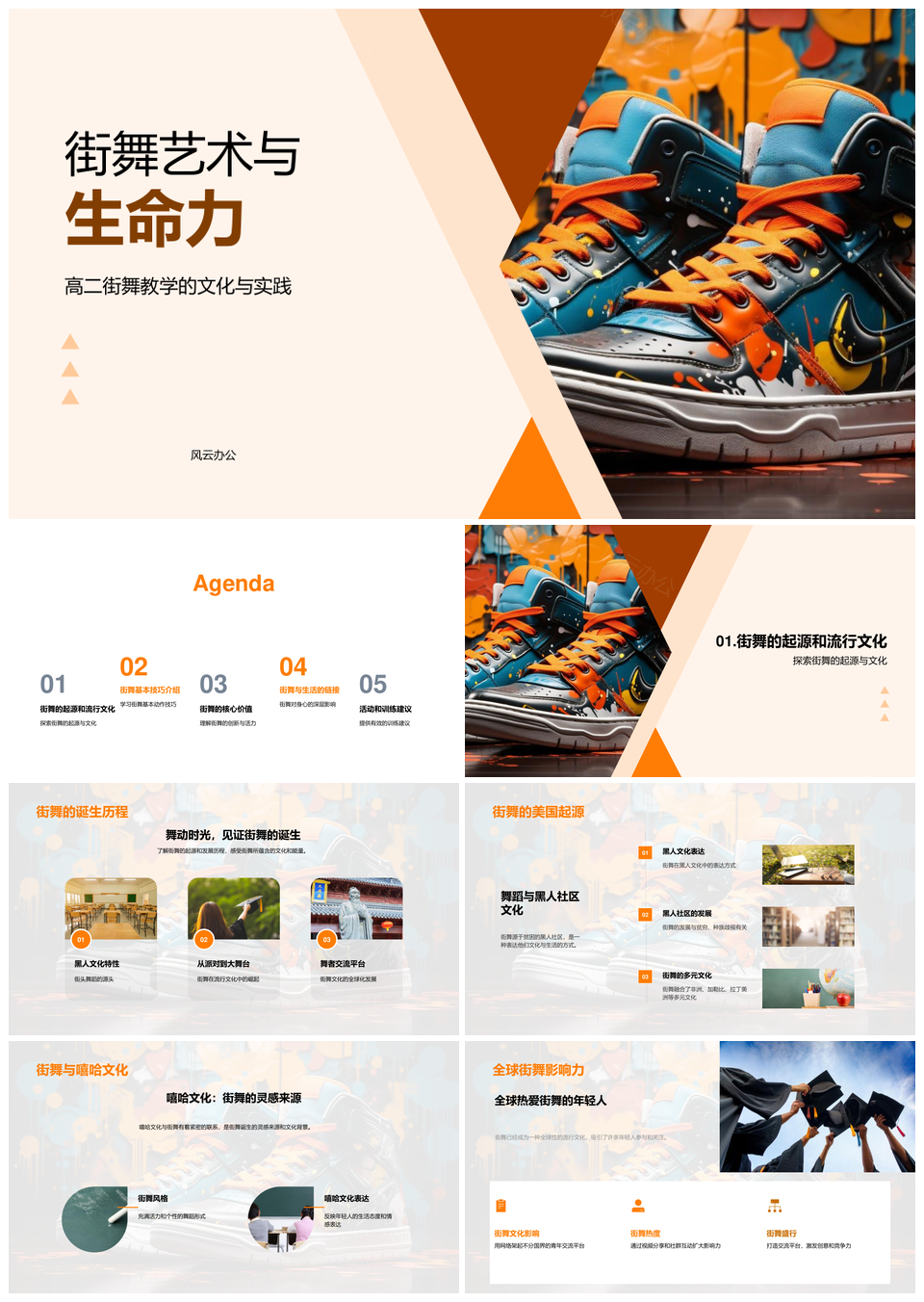 风云办公提供的高二街舞教学起源与流行涂鸦创新PPT模板,下载格式为pptx,一共33页,作品中文字及图均可以修改和编辑,图片更改请在作品中右键图片并更换,文字修改请直接点击文字进行修改。