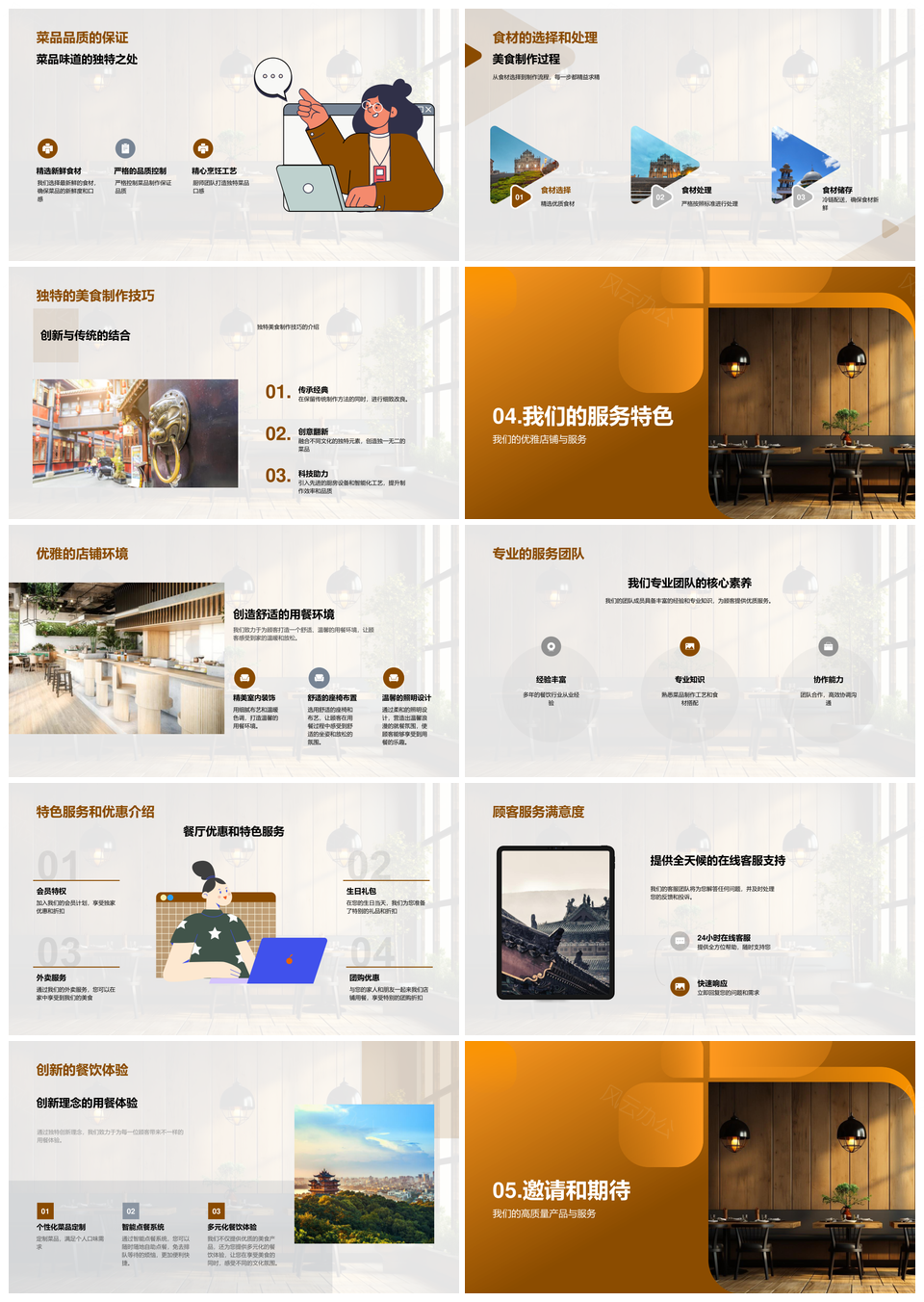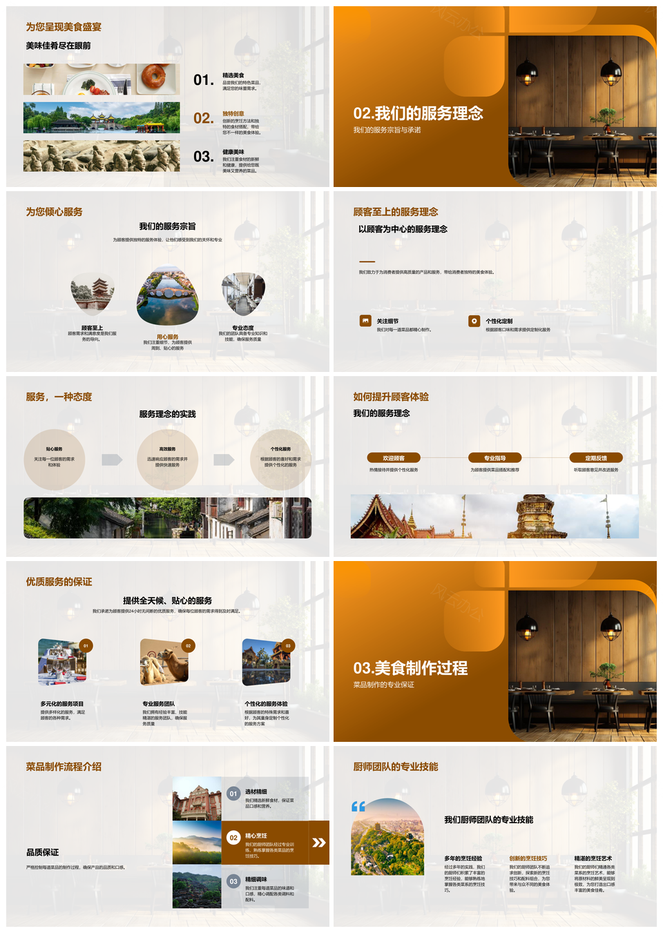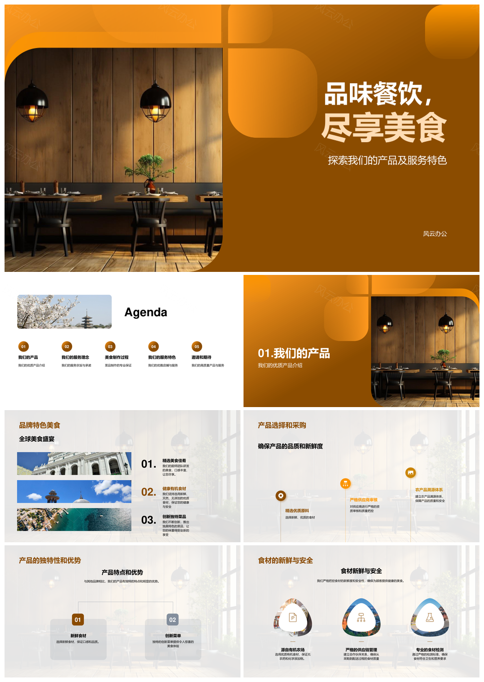 风云办公提供的匠心团队精制美食臻品体验PPT模板,下载格式为pptx,一共33页,作品中文字及图均可以修改和编辑,图片更改请在作品中右键图片并更换,文字修改请直接点击文字进行修改。