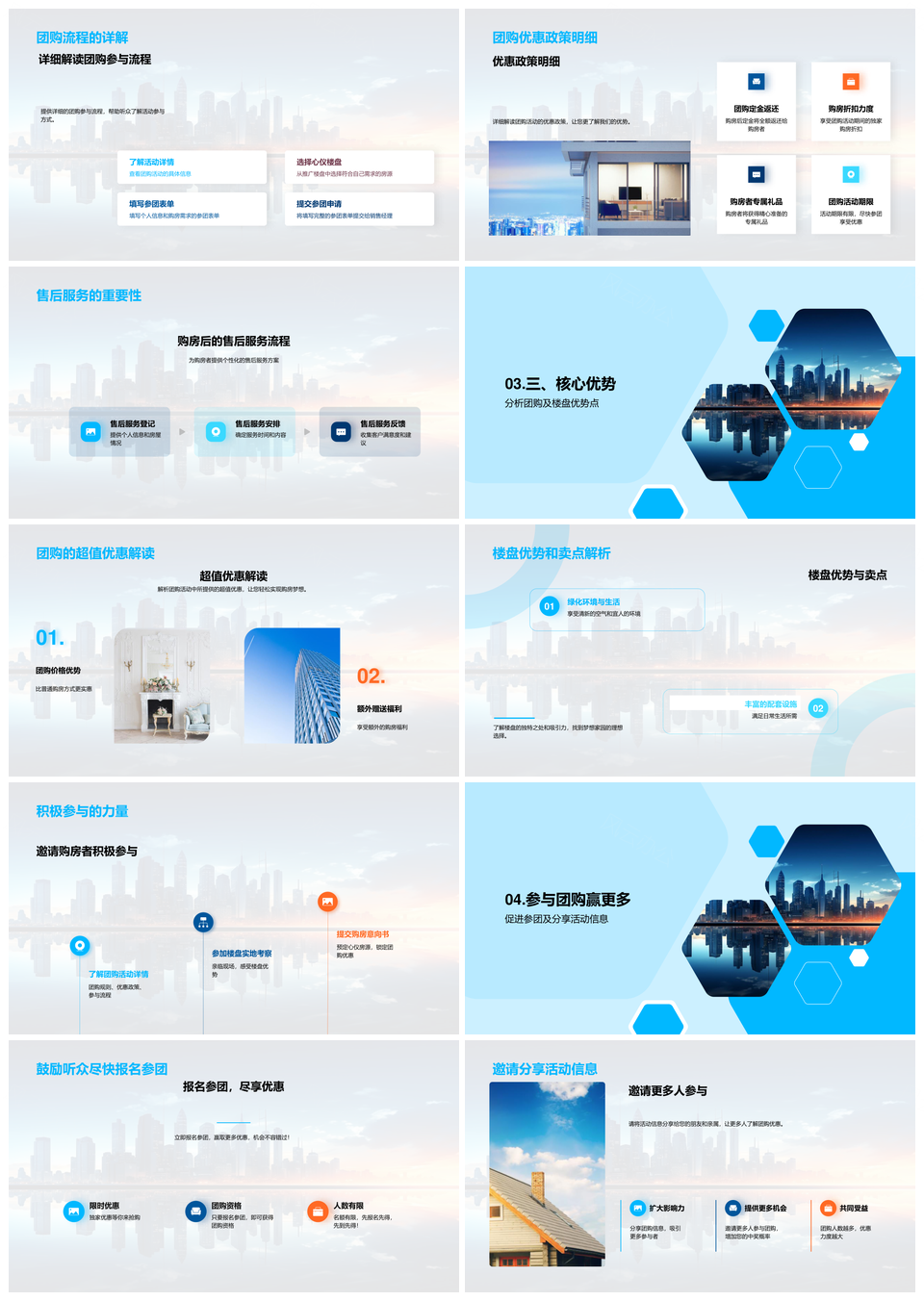这是一张房地产团购优惠指南助力购房梦想楼盘营销策划PPT模板,包含房地产、团购、优惠、指南、助力、购房、梦想、楼盘、营销、策划等主题内容,也可用作房地产团购优惠指南、团购优惠助力购房、优惠助力购房梦想、助力购房梦想楼盘、楼盘营销策划指南、房地产团购优惠、团购优惠指南、优惠指南助力、指南助力购房、助力购房梦想、购房梦想楼盘、楼盘营销策划、团购优惠、优惠购房、助力购房等PPT场景使用。 风云办公提供的房地产团购优惠指南助力购房梦想楼盘营销策划PPT模板,下载格式为pptx,一共23页,作品中文字及图均可以修改和编辑,图片更改请在作品中右键图片并更换,文字修改请直接点击文字进行修改。