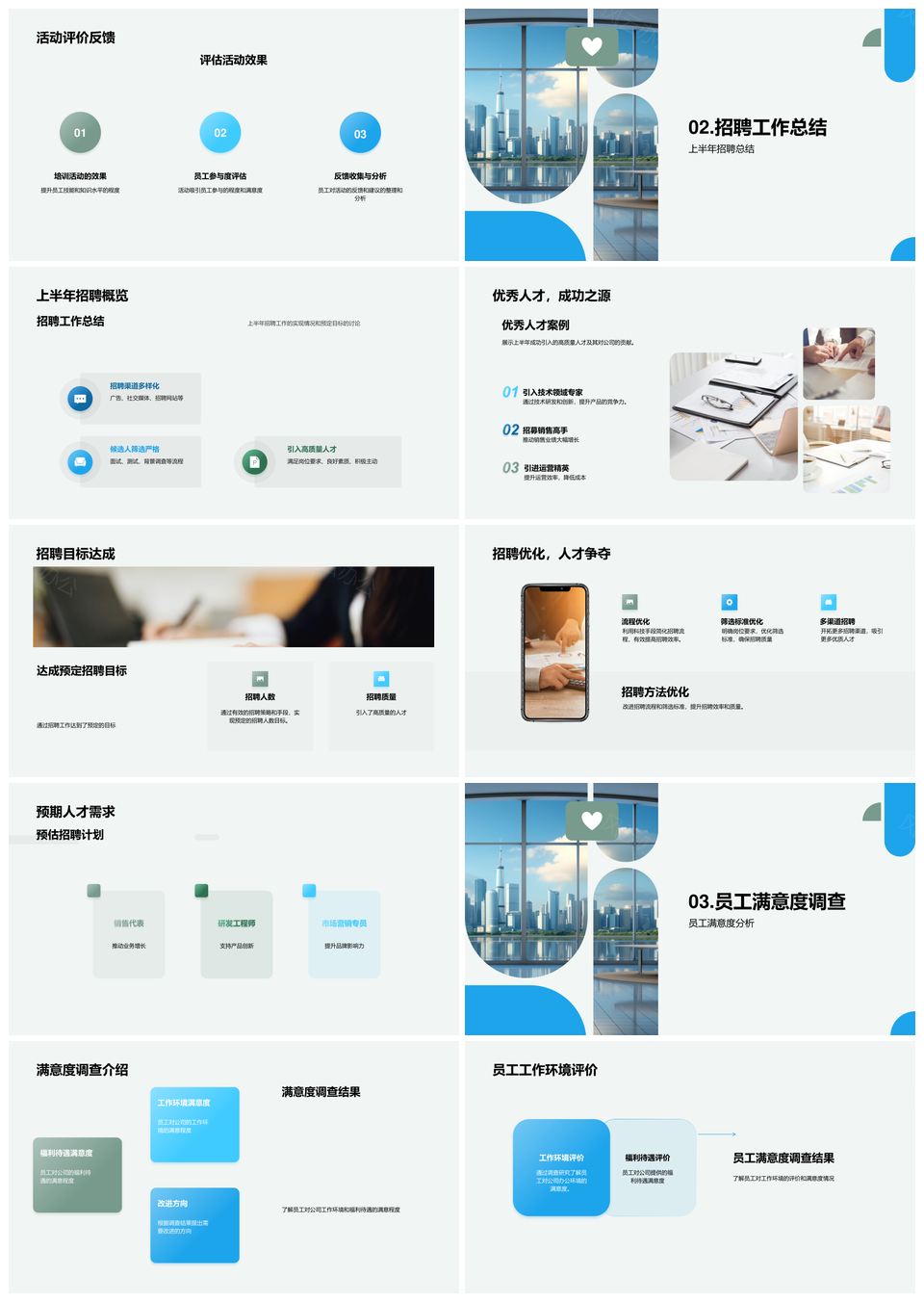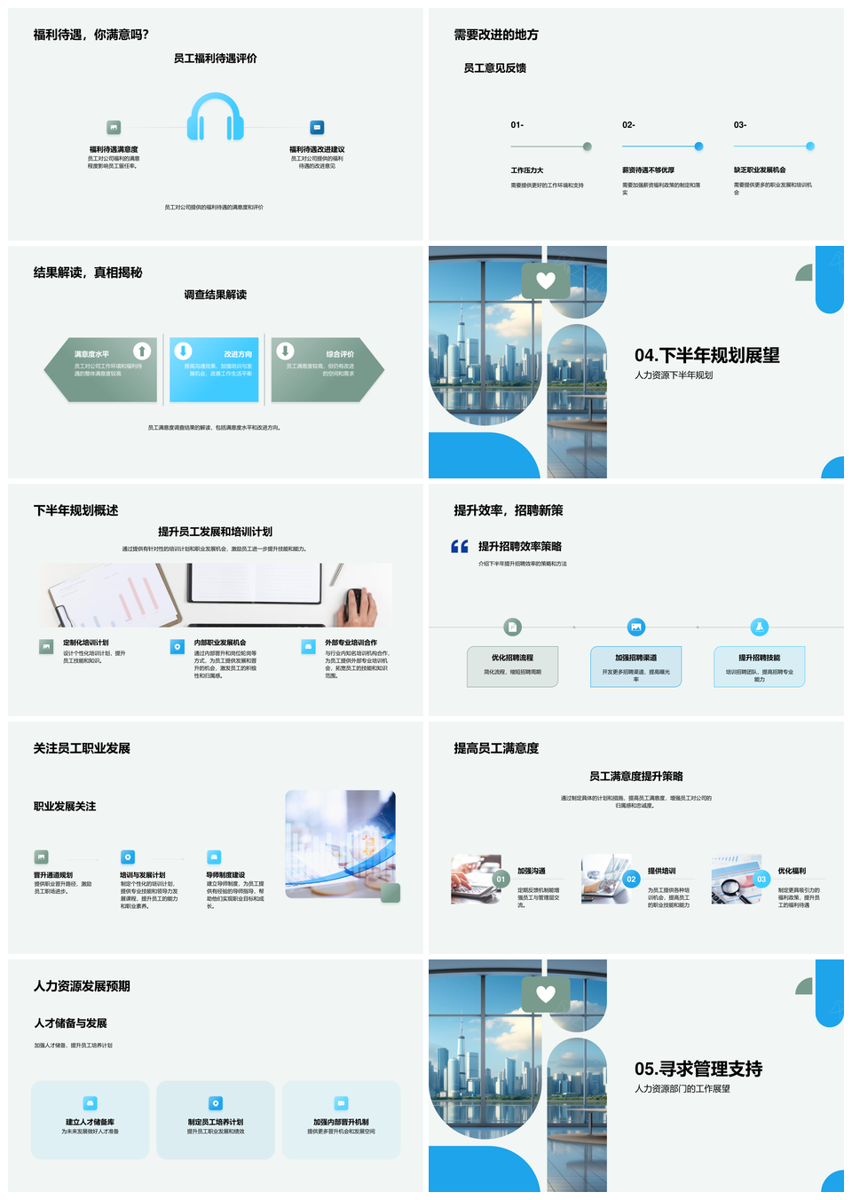 这是一张人力资源半年度招聘效率员工满意度活动福利管理PPT模板,包含人力资源、半年度、招聘、效率、员工、满意度、活动、福利、管理等主题内容,也可用作人力资源半年度招聘效率员工满意度活动福利管理、人力资源半年度招聘效率员工满意度、半年度招聘效率员工满意度活动、招聘效率员工满意度活动福利管理、员工满意度活动福利管理人力资源、活动福利管理人力资源半年度、福利管理人力资源半年度招聘、人力资源半年度招聘效率、人力资源半年度员工满意度、半年度招聘效率员工满意度、招聘效率员工满意度活动、员工满意度活动福利管理、活动福利管理人力资源、福利管理人力资源半年度、人力资源招聘效率员工满意度等PPT场景使用。 风云办公提供的人力资源半年度招聘效率员工满意度活动福利管理PPT模板,下载格式为pptx,一共33页,作品中文字及图均可以修改和编辑,图片更改请在作品中右键图片并更换,文字修改请直接点击文字进行修改。