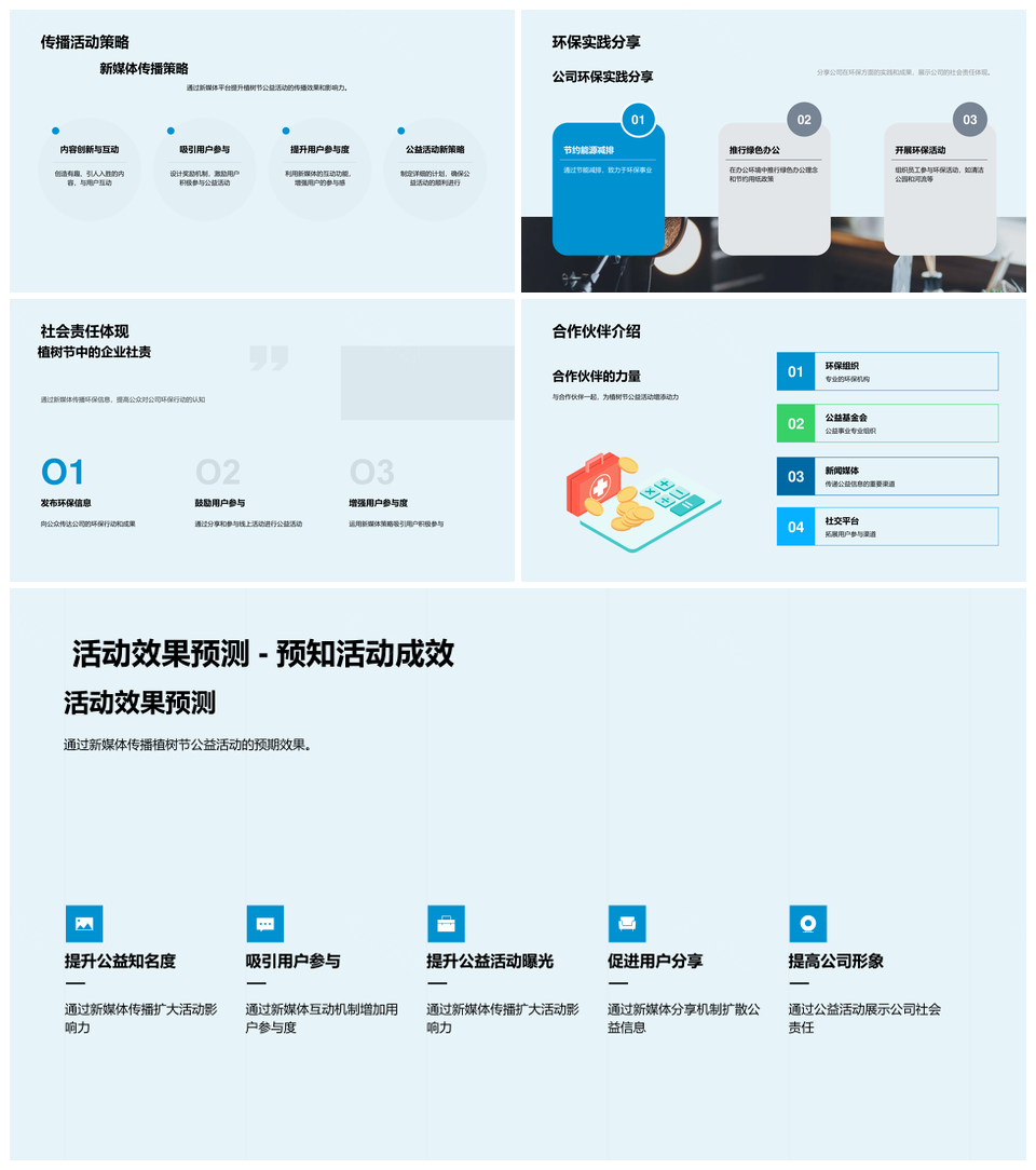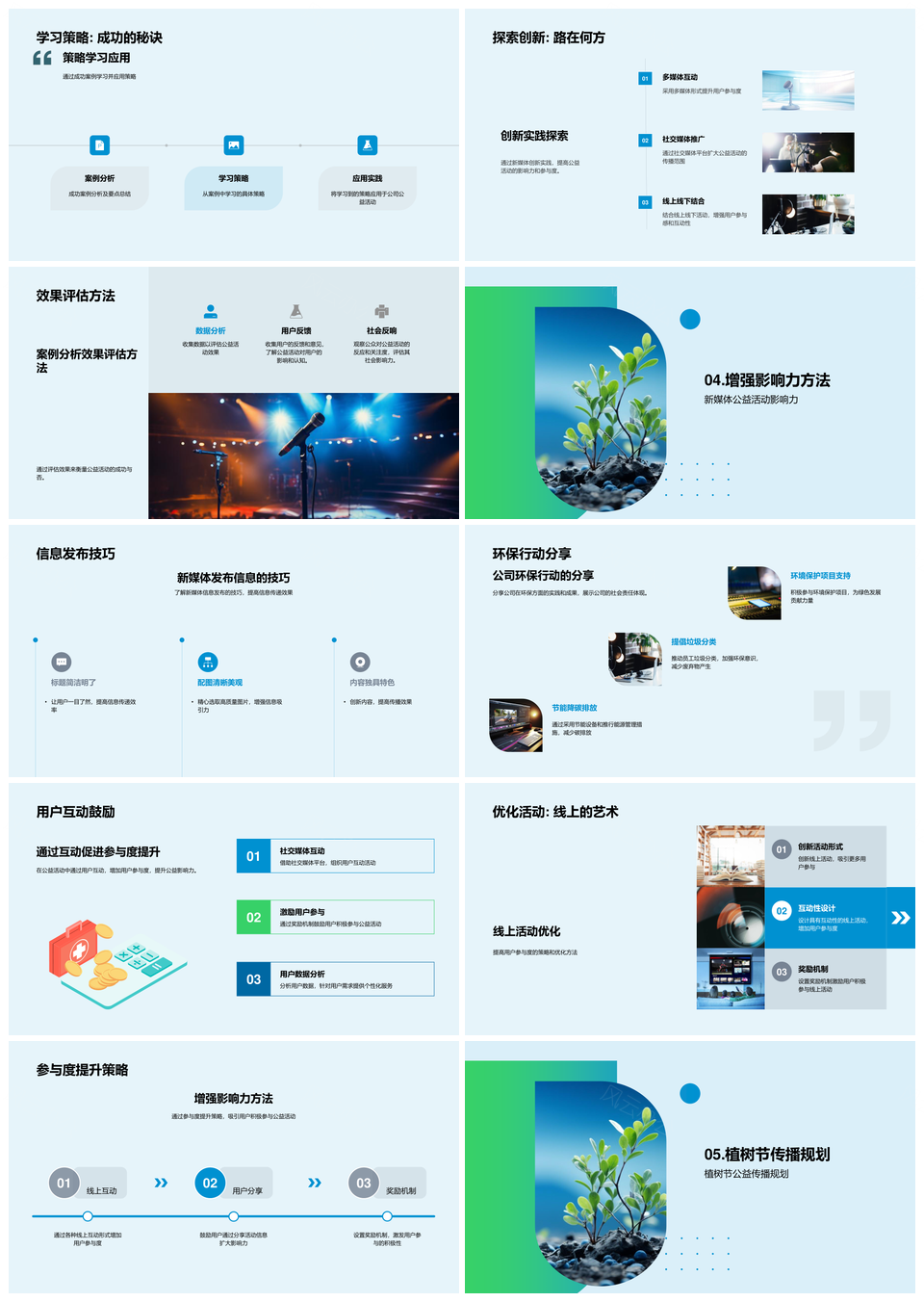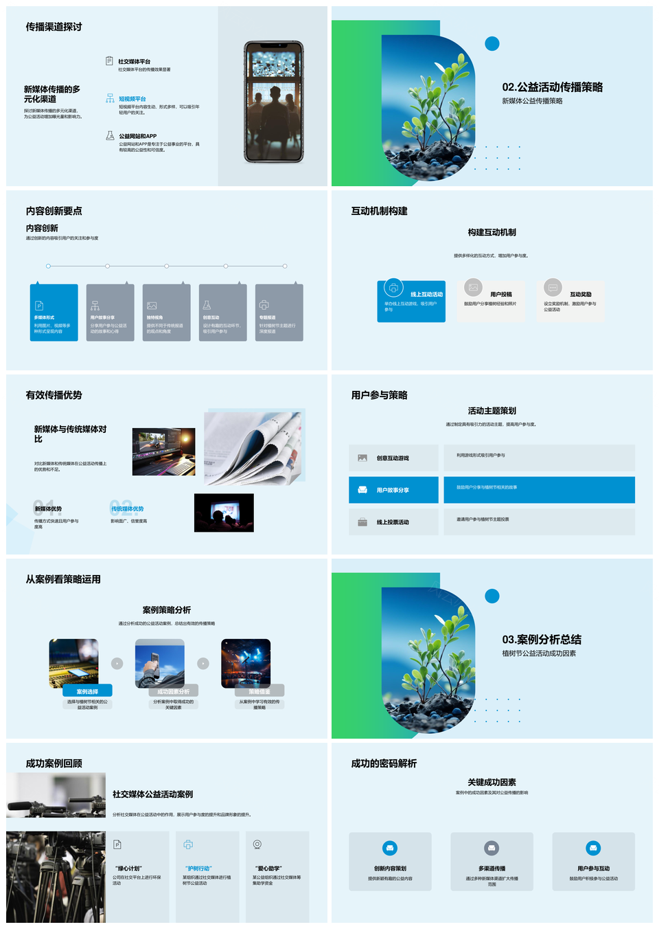 新媒体植树节公益创新传播策略驱动社会影响PPT模板推荐