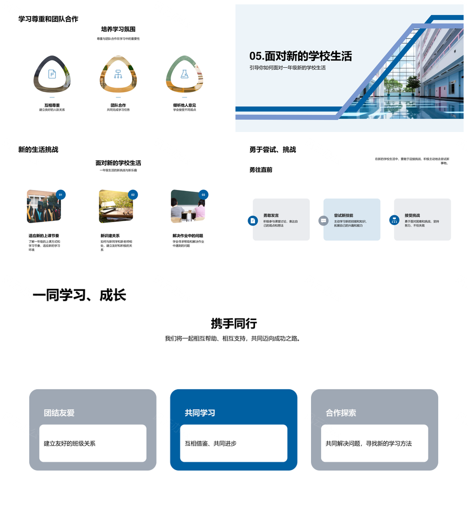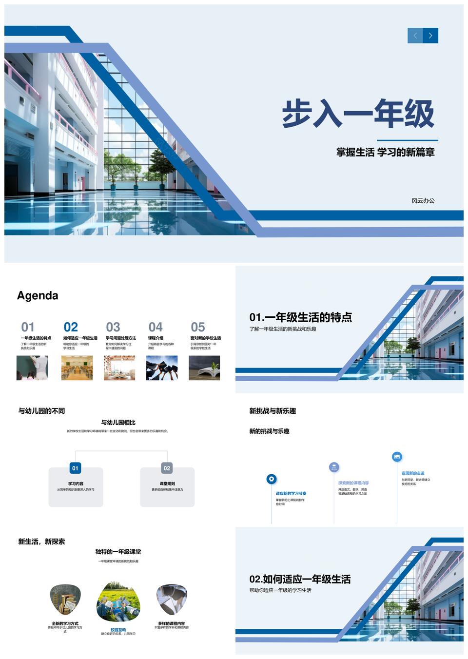 风云办公提供的一年级新生乐学迎挑战同窗聚校园PPT模板,下载格式为pptx,一共23页,作品中文字及图均可以修改和编辑,图片更改请在作品中右键图片并更换,文字修改请直接点击文字进行修改。