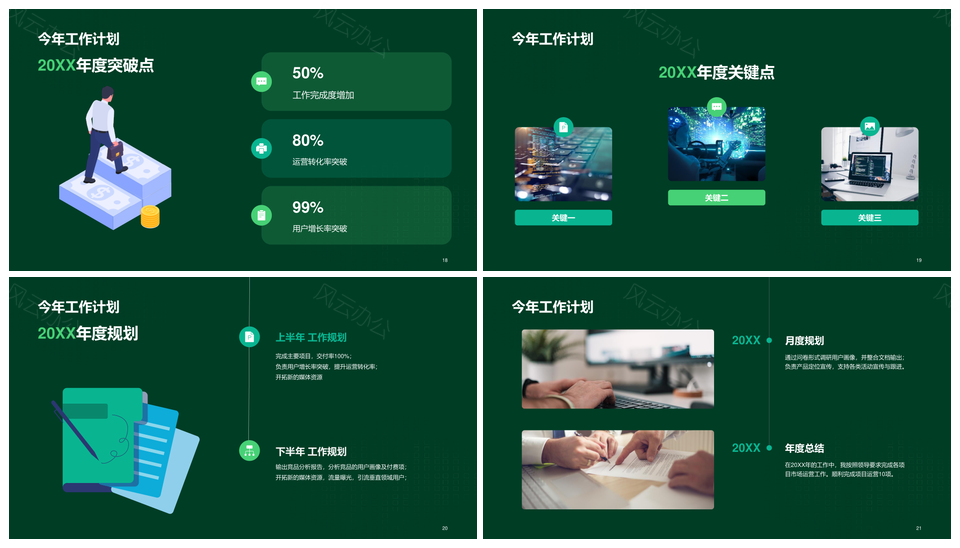 这是一张2025绿色科技互联网工作年度总结计划汇报PPT模板,包含2025、绿色科技、互联网、工作、年度总结、计划、汇报等主题内容,也可用作2025绿色科技互联网、绿色科技互联网工作、科技互联网工作年度、互联网工作年度总结、工作年度总结计划、年度总结计划汇报、2025绿色科技、绿色科技互联网、科技互联网工作、互联网工作年度、工作年度总结、年度总结计划、总结计划汇报、2025绿色、绿色科技等PPT场景使用。 风云办公提供的2025绿色科技互联网工作年度总结计划汇报PPT模板,下载格式为pptx,一共22页,作品中文字及图均可以修改和编辑,图片更改请在作品中右键图片并更换,文字修改请直接点击文字进行修改。
