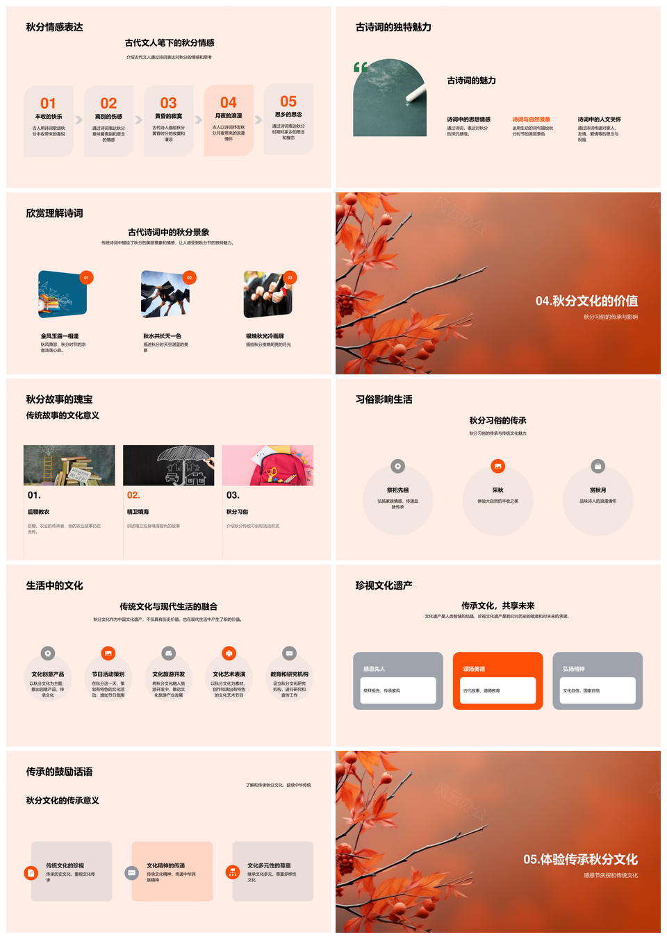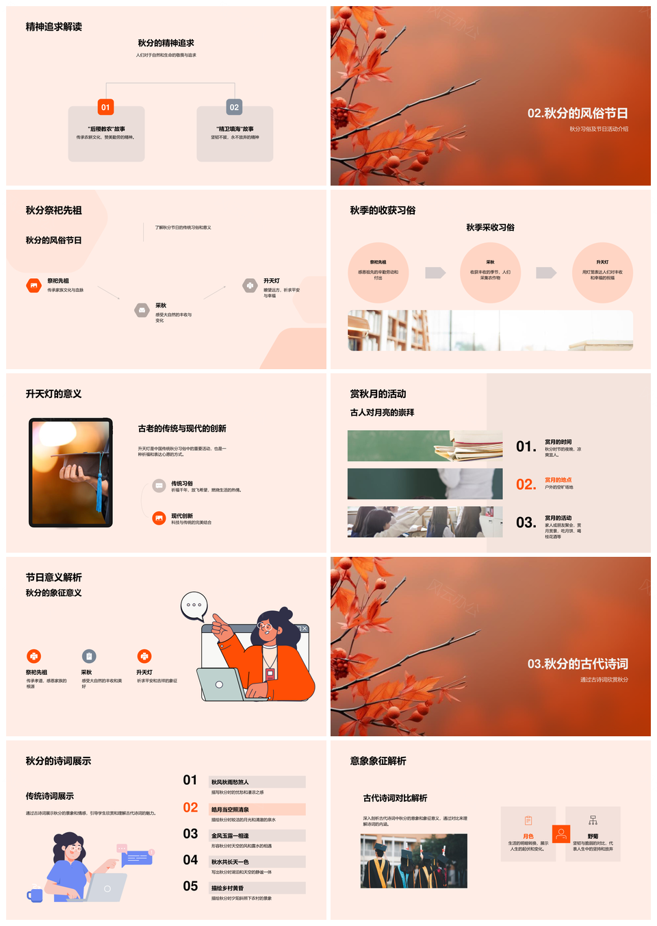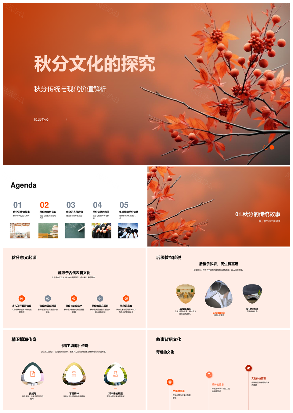 风云办公提供的秋分祭祖升灯赏月文化精神探源PPT模板,下载格式为pptx,一共33页,作品中文字及图均可以修改和编辑,图片更改请在作品中右键图片并更换,文字修改请直接点击文字进行修改。