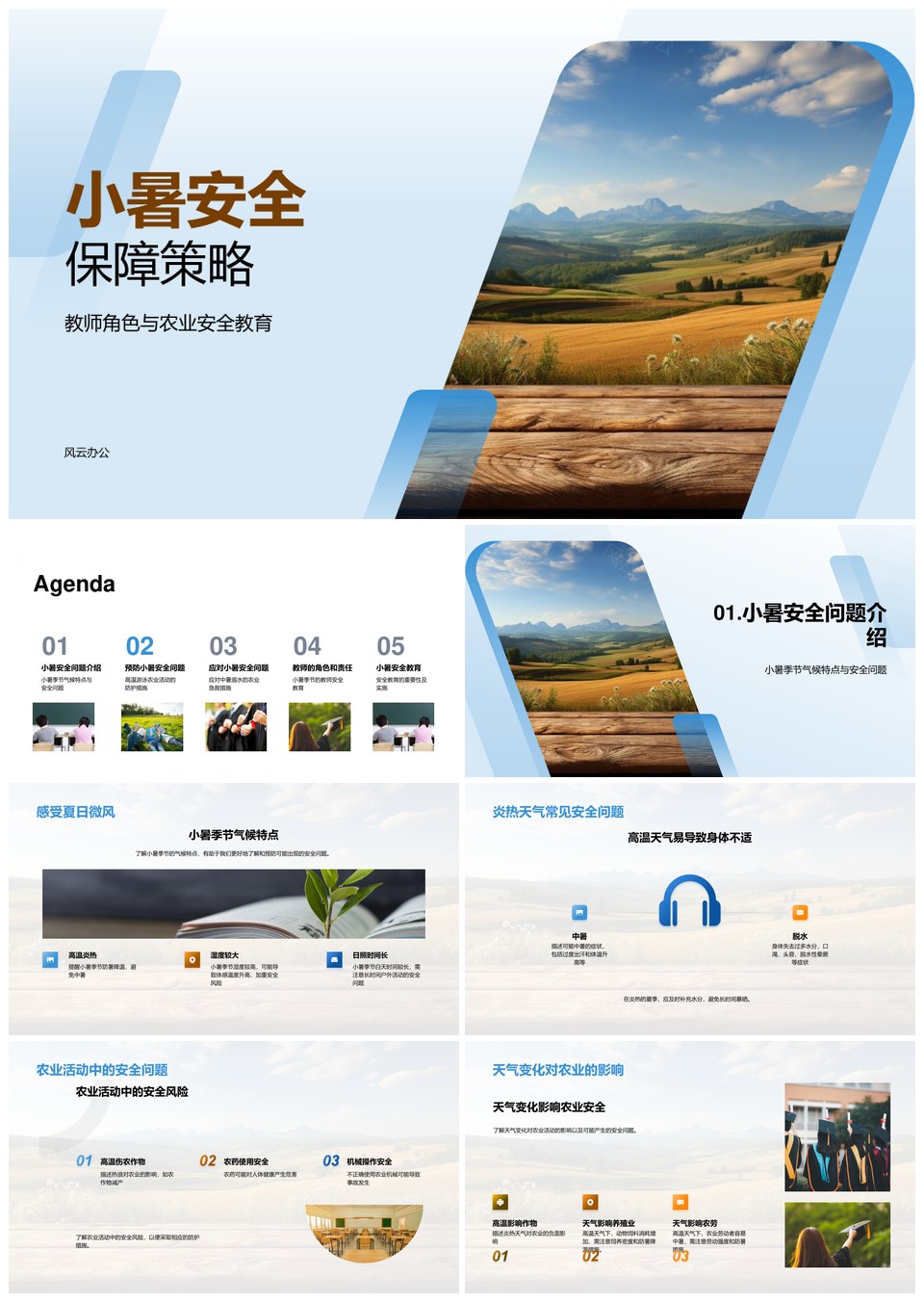 风云办公提供的小暑农教高温安全教师防范措施PPT模板,下载格式为pptx,一共28页,作品中文字及图均可以修改和编辑,图片更改请在作品中右键图片并更换,文字修改请直接点击文字进行修改。