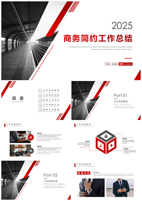 2025红色商务简约大气创意欧美风汇报年终报告PPT模板