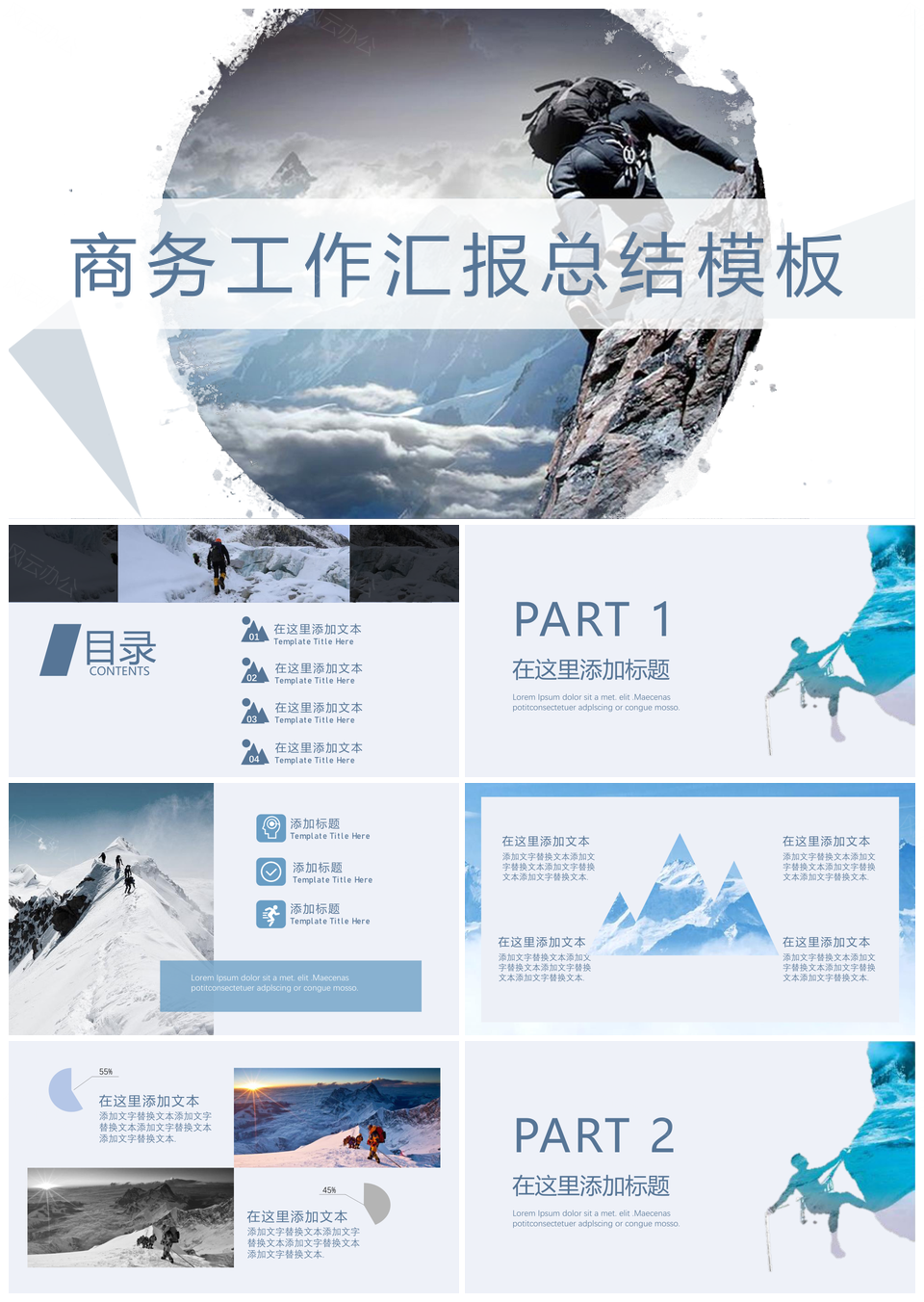 2025蓝色商务风简约大气工作汇报总结计划PPT模板
