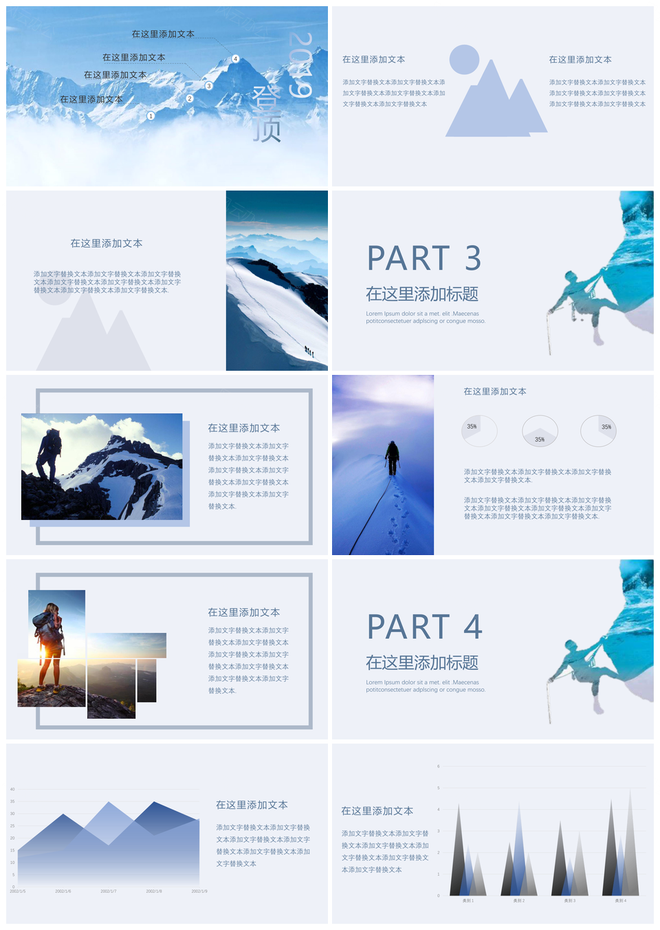蓝色工作汇报总结计划清新极简约风商务风PPT模板
