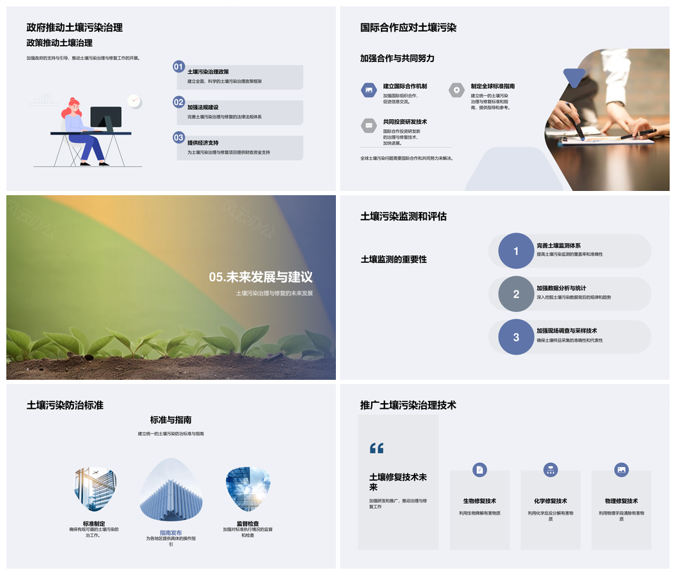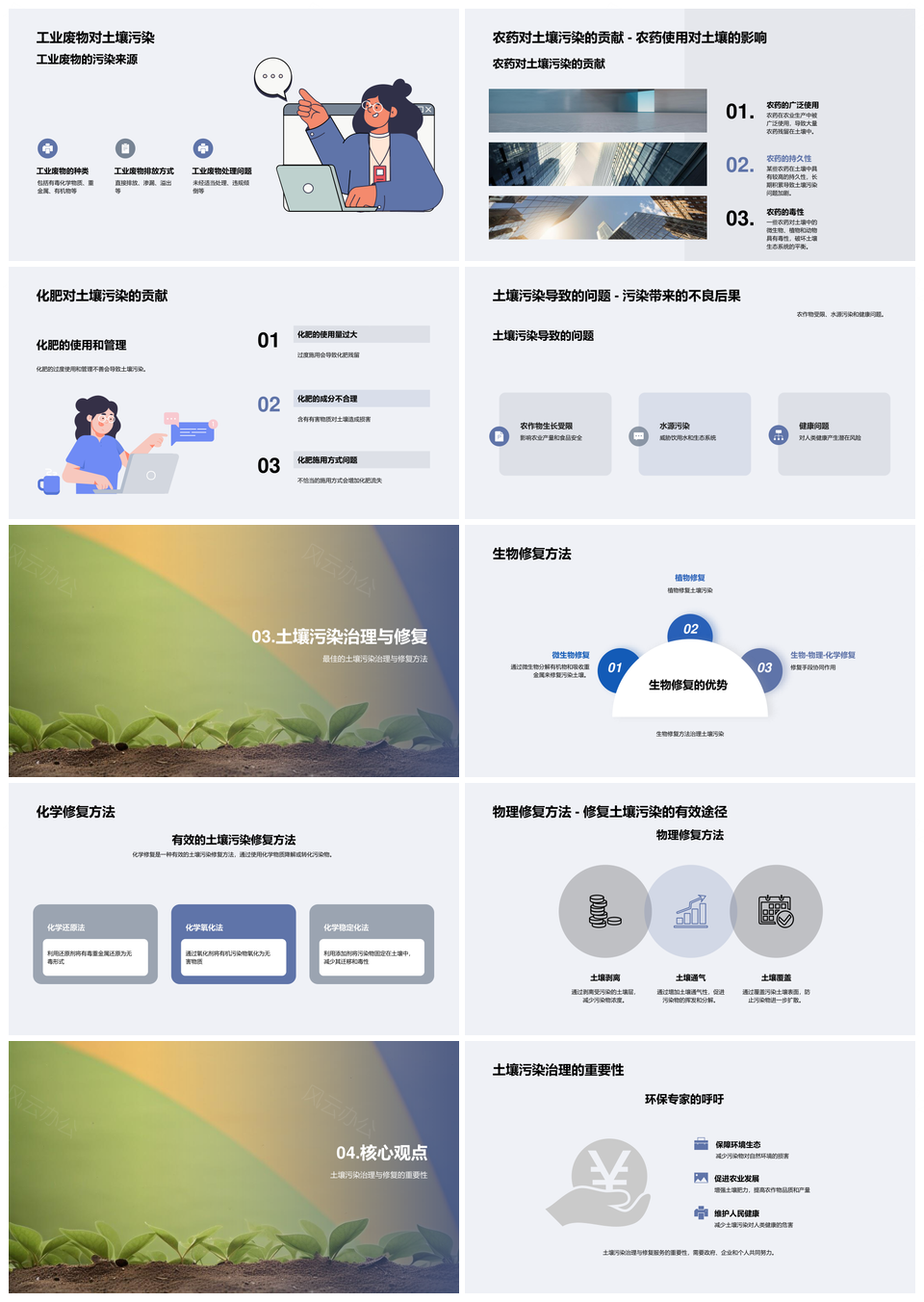这是一张土壤污染治理修复环保专家研讨方法重要性PPT模板,包含土壤污染、治理修复、环保专家、研讨、方法、重要性等主题内容,也可用作土壤污染治理修复环保、治理修复环保专家研讨、环保专家研讨方法重要性、土壤污染治理修复、治理修复环保专家、修复环保专家研讨、环保专家研讨方法、专家研讨方法重要性、治理修复环保、土壤污染治理、治理修复、修复环保、环保专家、专家研讨、研讨方法等PPT场景使用。 风云办公提供的土壤污染治理修复环保专家研讨方法重要性PPT模板,下载格式为pptx,一共24页,作品中文字及图均可以修改和编辑,图片更改请在作品中右键图片并更换,文字修改请直接点击文字进行修改。