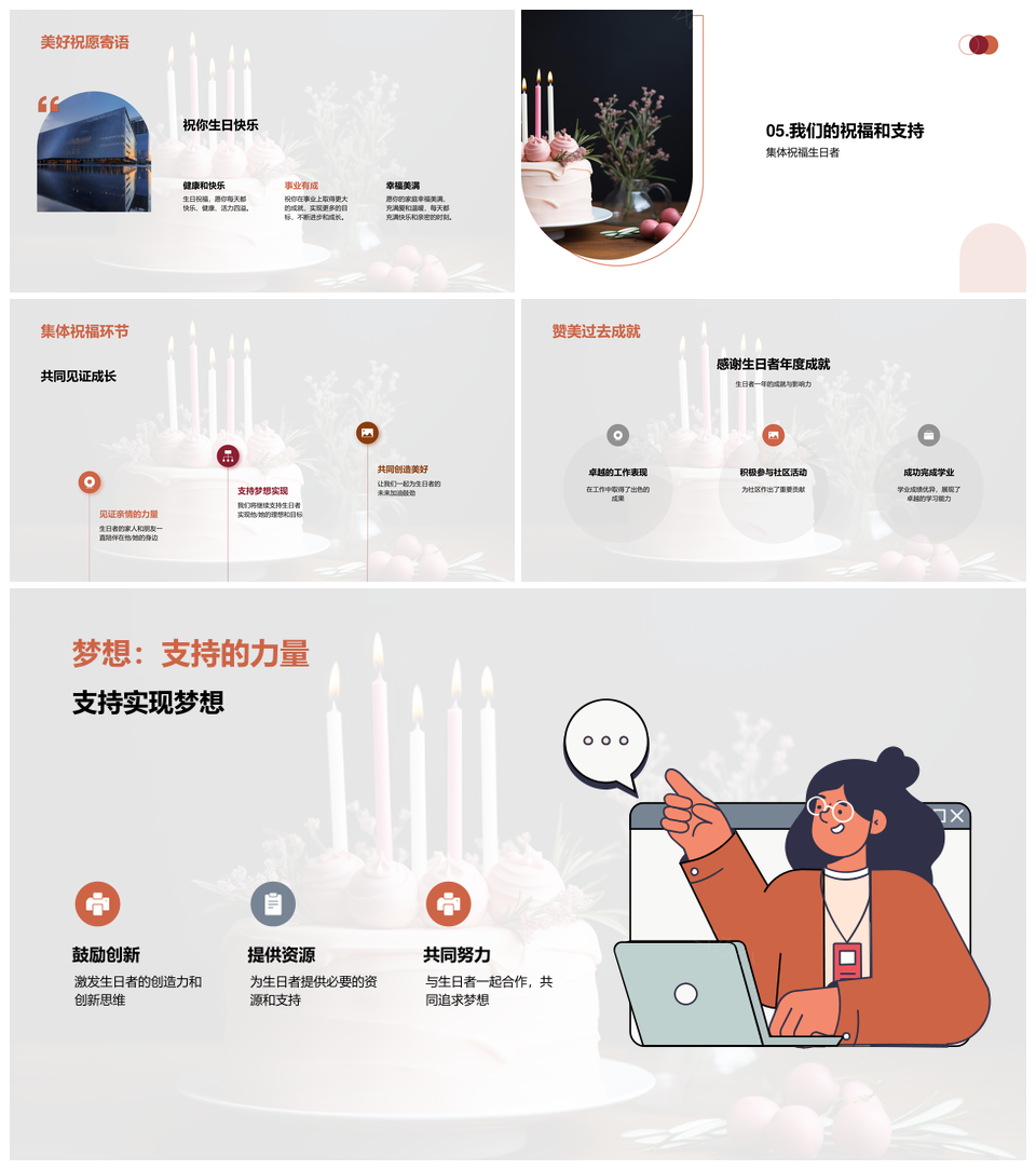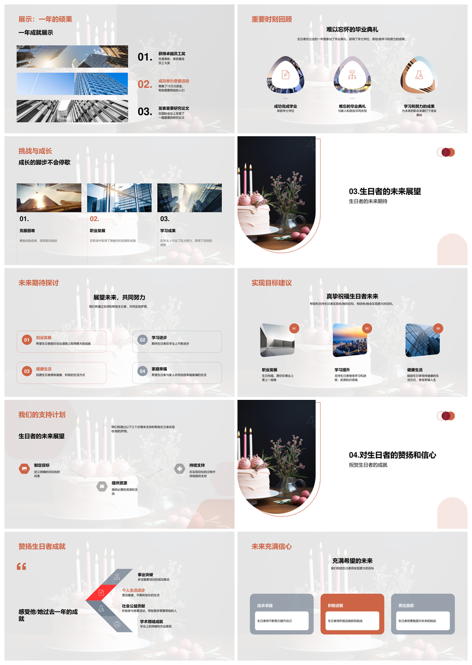 这是一张生日者光辉旅程主持趣事回顾展望祝福PPT模板,包含生日者、光辉、旅程、主持、趣事、回顾、展望、祝福等主题内容,也可用作光辉旅程主持趣事、旅程主持趣事回顾、主持趣事回顾展望、趣事回顾展望祝福、生日者光辉旅程、光辉旅程主持、旅程主持趣事、主持趣事回顾、趣事回顾展望、回顾展望祝福、光辉旅程、旅程主持、主持趣事、趣事回顾、回顾展望等PPT场景使用。