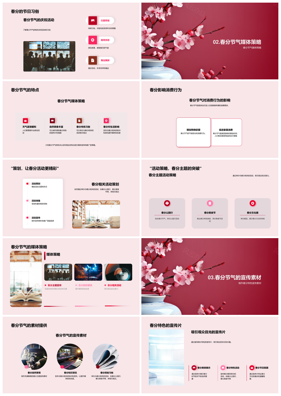 这是一张春分节气民俗活动媒体推广与樱花消费营销策略PPT模板,包含春分节气、民俗活动、媒体推广、樱花、消费、营销策略等主题内容,也可用作春分节气民俗活动媒体推广、民俗活动媒体推广樱花消费、媒体推广樱花消费营销策略、节气民俗活动媒体推广樱花、春分节气民俗活动樱花、民俗活动樱花消费营销策略、樱花消费营销策略春分、春分节气樱花消费营销、节气媒体推广樱花消费、民俗活动媒体推广营销策略、春分节气媒体推广樱花、民俗活动樱花消费营销、媒体推广樱花营销策略、春分樱花消费营销策略、节气民俗活动樱花消费等PPT场景使用。 风云办公提供的春分节气民俗活动媒体推广与樱花消费营销策略PPT模板,下载格式为pptx,一共33页,作品中文字及图均可以修改和编辑,图片更改请在作品中右键图片并更换,文字修改请直接点击文字进行修改。