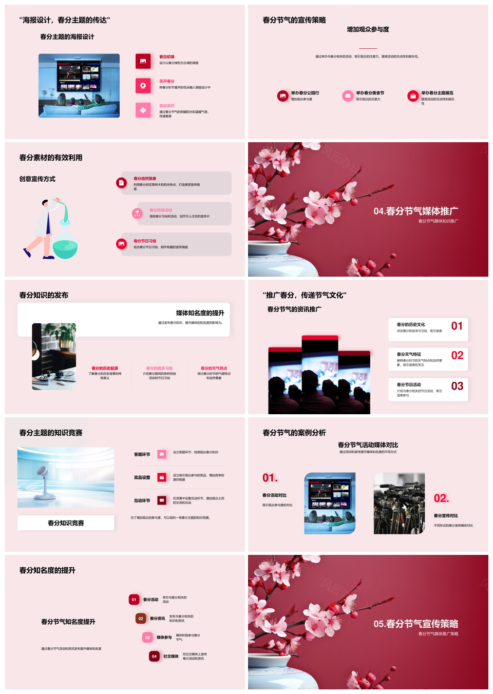 春分节气民俗活动媒体推广与樱花消费营销策略PPT模板推荐