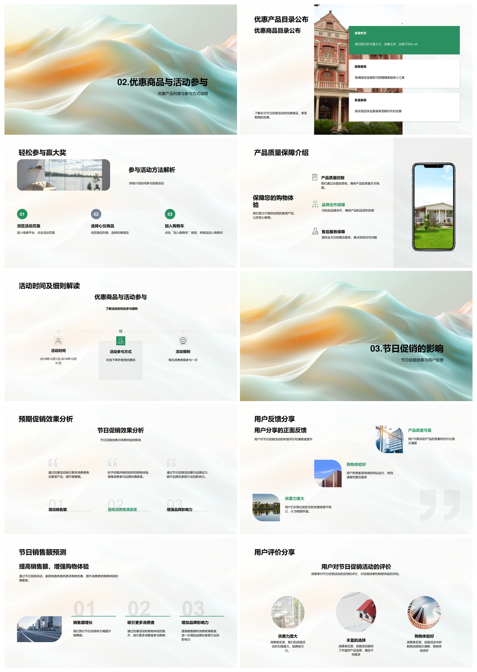 这是一张家居节日促销电商购物指南品质保障销售预测PPT模板,包含家居、节日、促销、电商、购物、指南、品质、保障、销售、预测等主题内容,也可用作家居节日促销电商购物指南、节日促销电商购物指南品质保障、电商购物指南品质保障销售预测、家居节日促销电商、节日促销电商购物指南、电商购物指南品质保障、购物指南品质保障销售预测、家居节日促销、节日促销电商、电商购物指南、购物指南品质保障、品质保障销售预测、家居电商购物指南、节日促销品质保障、电商购物指南销售预测等PPT场景使用。 风云办公提供的家居节日促销电商购物指南品质保障销售预测PPT模板,下载格式为pptx,一共28页,作品中文字及图均可以修改和编辑,图片更改请在作品中右键图片并更换,文字修改请直接点击文字进行修改。