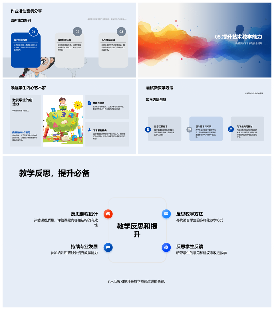 这是一张一年级美术游戏化激趣创新作业教学反思PPT模板,包含一年级、美术、游戏化、激趣、创新、作业、教学、反思等主题内容,也可用作一年级美术游戏化激趣、美术游戏化激趣创新、游戏化激趣创新作业、激趣创新作业教学、创新作业教学反思、一年级游戏化创新教学、美术激趣作业反思、激趣创新教学反思、创新作业游戏化教学、激趣游戏化创新作业、美术教学游戏化创新、一年级激趣创新教学、创新教学反思激趣、游戏化教学激趣反思、激趣作业游戏化创新等PPT场景使用。 风云办公提供的一年级美术游戏化激趣创新作业教学反思PPT模板,下载格式为pptx,一共23页,作品中文字及图均可以修改和编辑,图片更改请在作品中右键图片并更换,文字修改请直接点击文字进行修改。